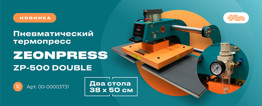 Рады представить долгожданную новинку - термопресс плоский ZEONPRESS, ZP-500 DOUBLE, пневматический, два стола, 2 х 38 х 50 см (арт. 00-00003731).