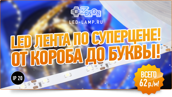 Главная/Акции/Новости/От короба до буквы! LED лента 60 SMD 3528 всего 62 руб/м!