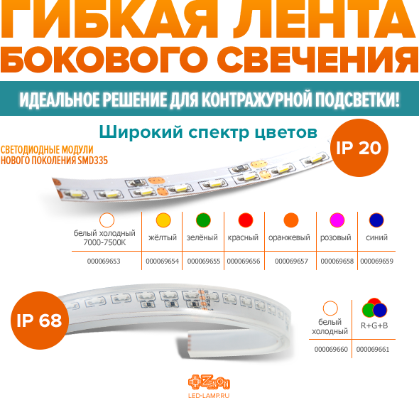 В основе этой ленты лежат светодиодные модули нового поколения SMD335. Главной особенностью этой ленты является расположение светодиодов. В отличии от обычной ленты, диоды расположены параллельно поверхности, на которую клеится лента.
