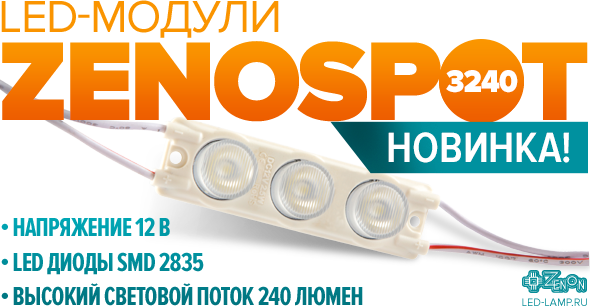 Главная/Акции/Новости/Новинка! Уникальные LED-модули для торцевой подсветки ZENOSPOT 3240 с линзой направленного действия