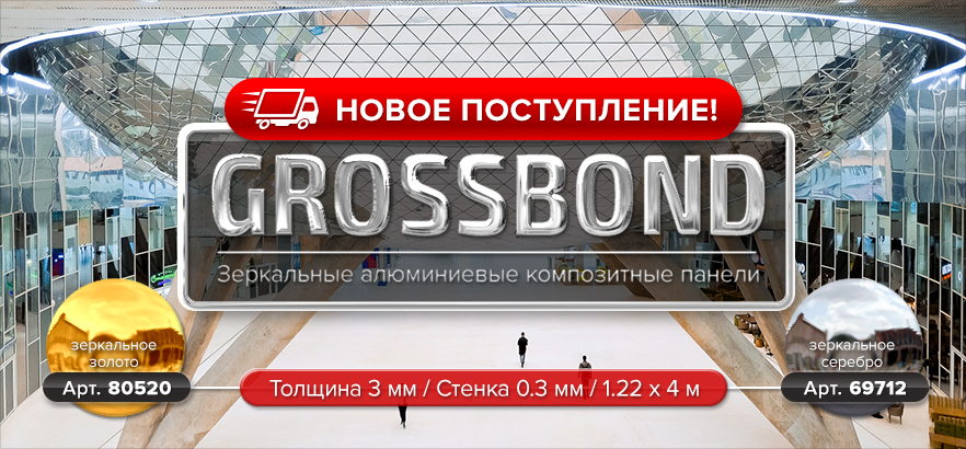 Сообщаем вам о поступлении ЗЕРКАЛЬНЫХ алюминиевых композитных панелей GROSSBOND в цветах «серебро» и «золото» на наш распределительный склад: