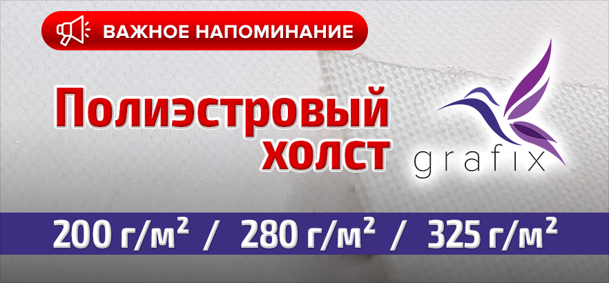 Компания ЗЕНОН осуществляет поставки нескольких видов полиэстровых холстов Grafix плотностью 200 г/м², 280 г/м², 325 г/м².