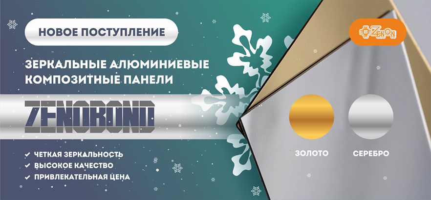 На наш распределительный склад поступила большая партия ЗЕРКАЛЬНЫХ алюминиевых композитных панелей ZENOBOND в цветах «серебро» и «золото»: