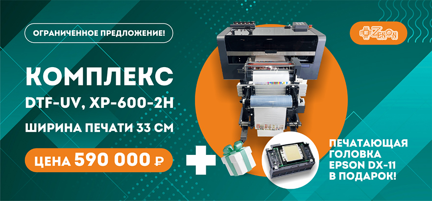 Успейте приобрести комплекс DTF-UV, XP-600-2H с печатающей головкой DX-11 в подарок!