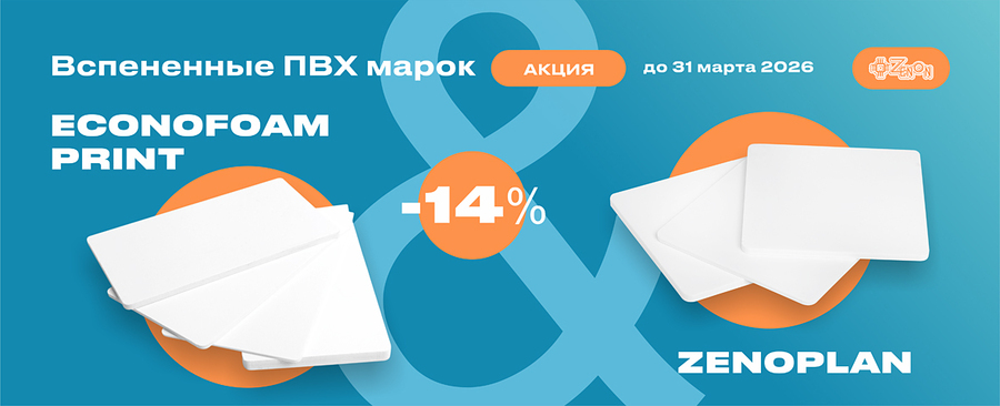 Выгодное предложение! С 04 по 31 марта 2026 года на вспененные ПВХ-пластики марок ECONOFOAM PRINT и ZENOPLAN действует скидка 14%.