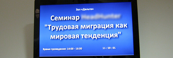 ...мы не испытывали проблем с интересом к теме проводимого нами семинара. Скажу более - была отмечена "трудовая миграция" посетителей соседнего мероприятия в наш зал. ![]() |