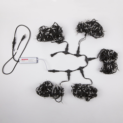 Изменение длины. В комплекте поставляется блок питания 60 Вт расчитанный на подключение одного СПАЙДЕРА (5ть лучей). При необходимости увеличения количества лучей, необходимо заменить блок питания на более мощный, расчитанный на подключаемую нагрузку с учетом запаса мощности не менее 20-30%. Не рекомендуется нарашивать гирлянду более 3-х СПАЙДЕРОВ из-за возможности перегрева провода и разрушения изоляции.