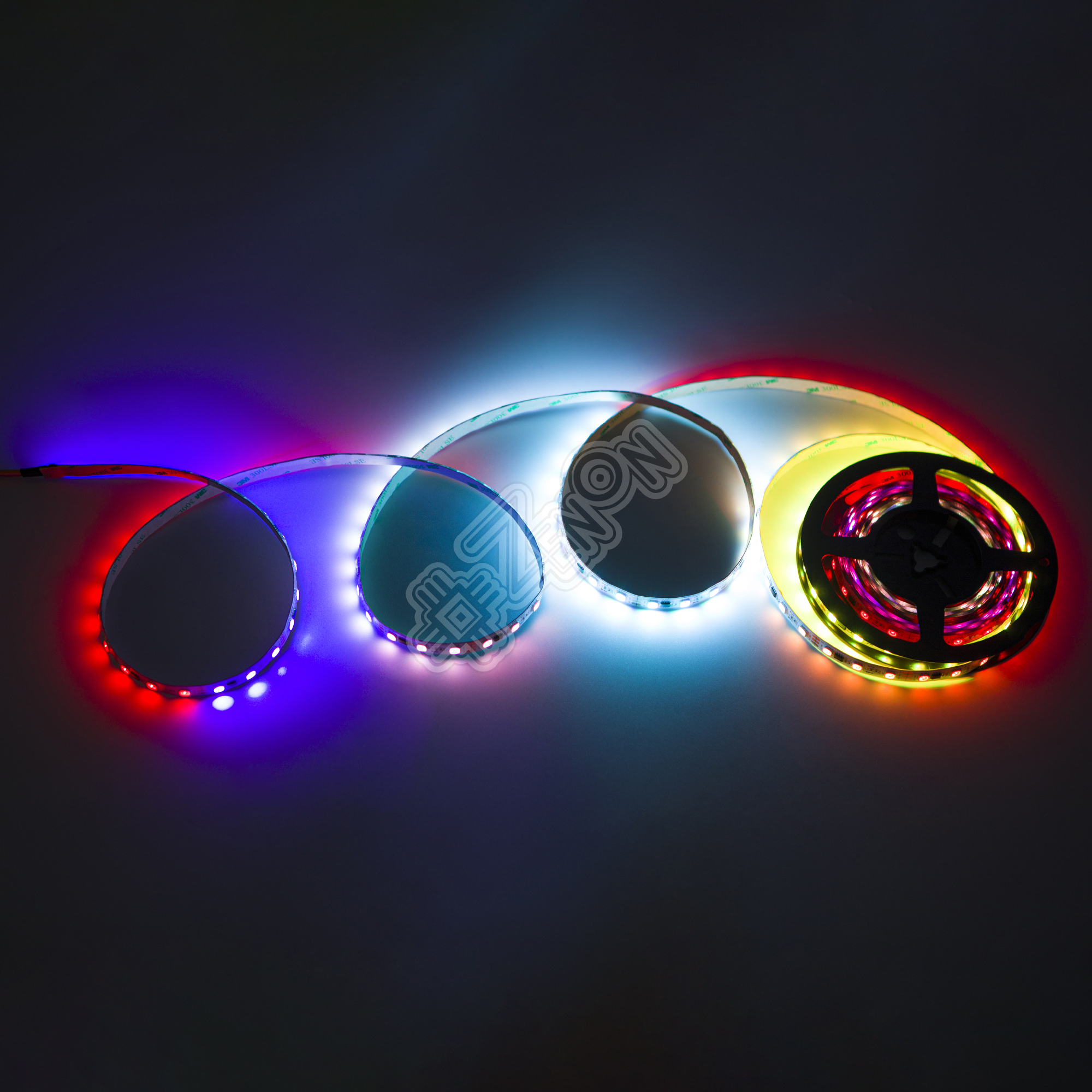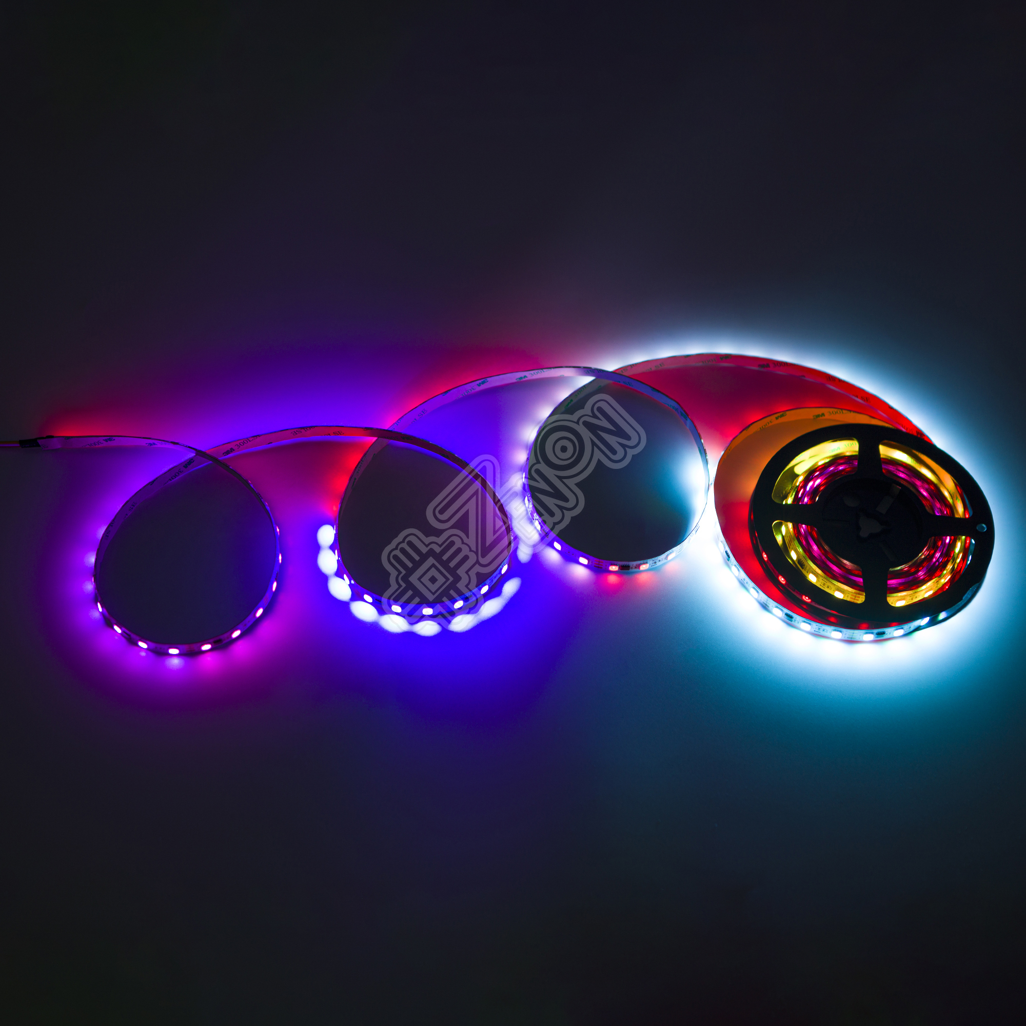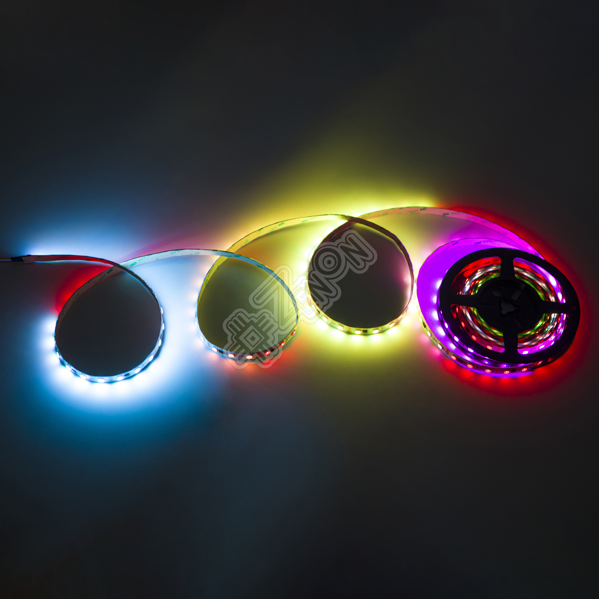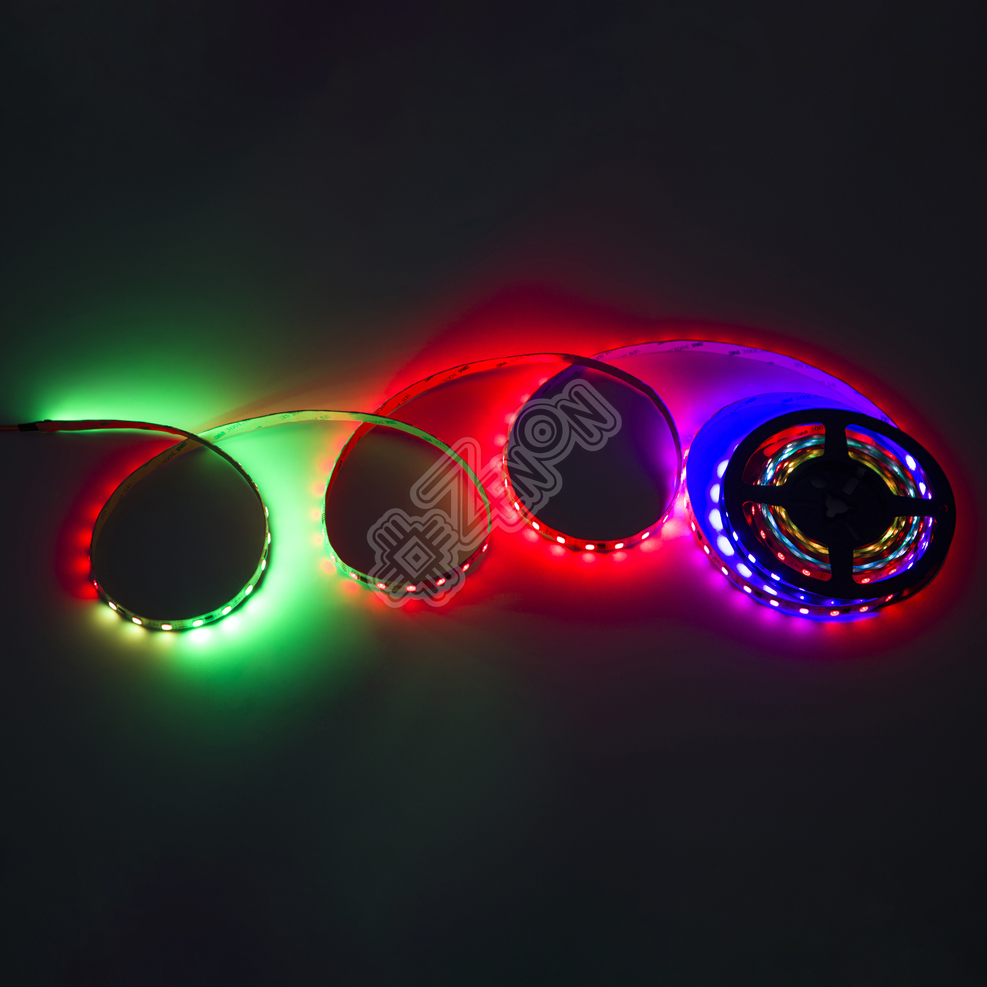 Так как для каждого сегмента (*далее ЧИП или IC) осуществляется свое управление, появляется огромное количество (358 режимов) всевозможных динамических режимов свечения. В том числе, так всем полюбившийся режим "Бегущий огонь" или "Бегущая волна" (последовательная смена всех цветов на всей длине светодиодной ленты).