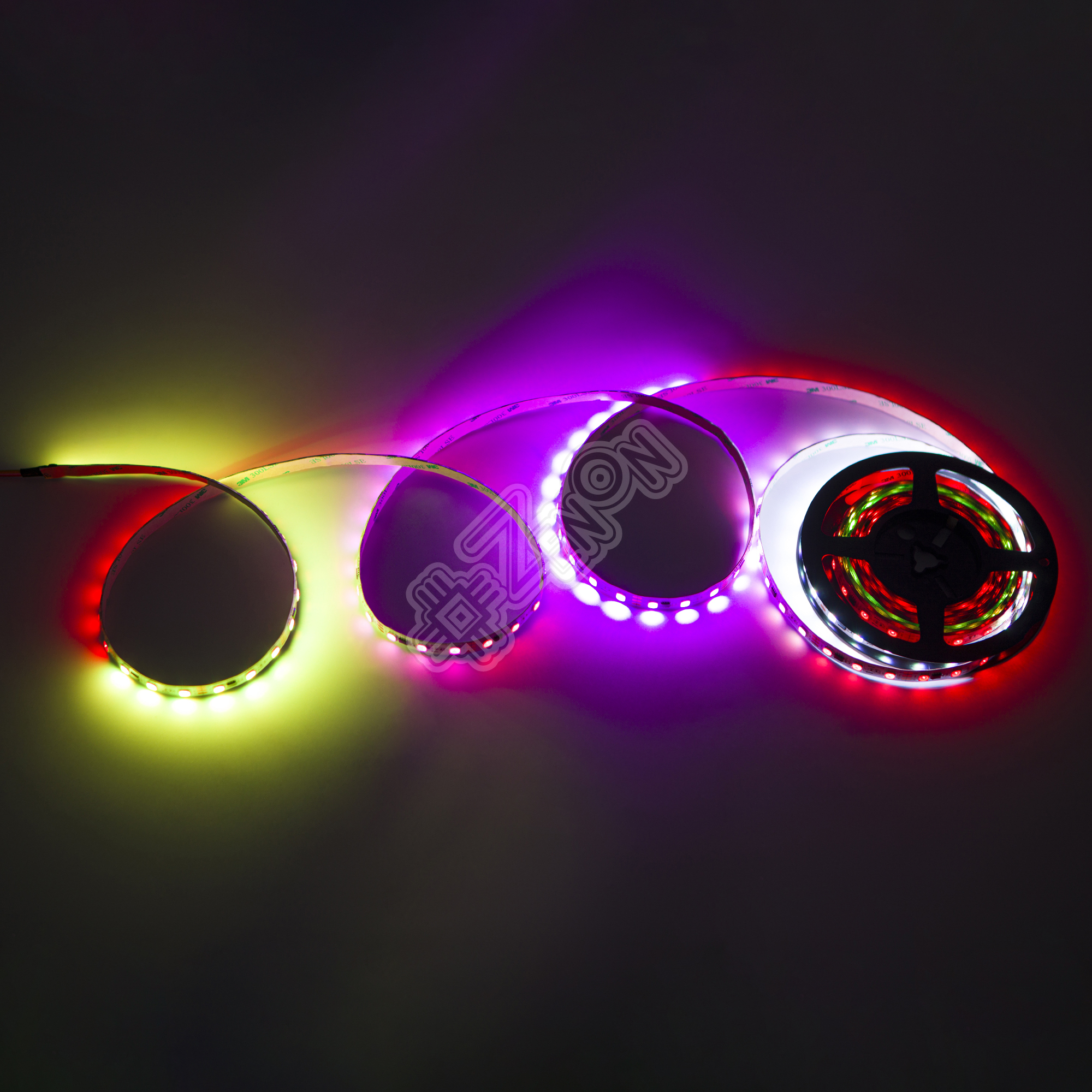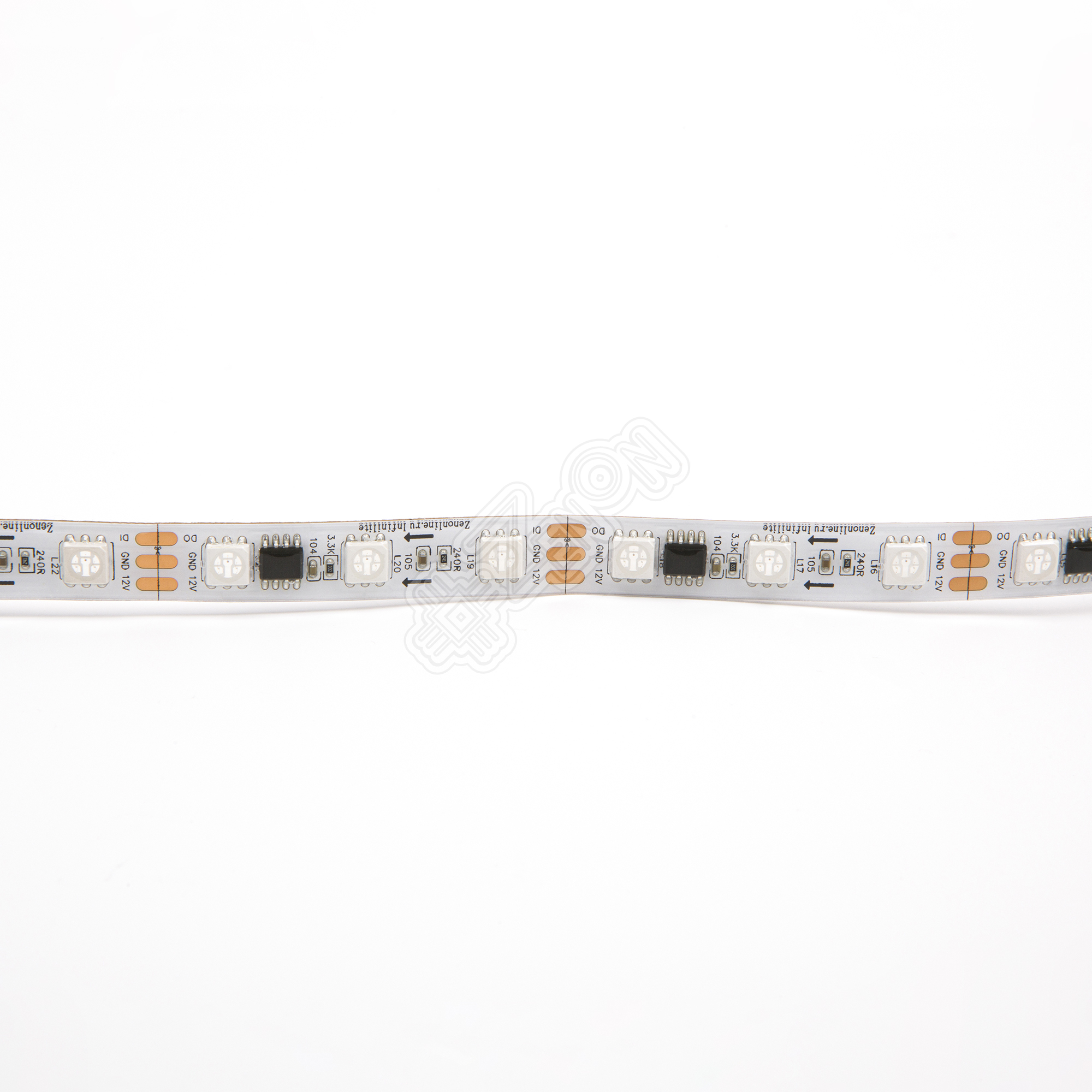 Источниками свечения светодиодной ленты Infinilite 12В SMART/SPI "БЕГУЩИЙ ОГОНЬ" являются стандартные светодиоды SMD5050, которые давно зарекомендовали себя на обычных светодиодных лентах RGB. Но, в отличие от обычной ленты RGB, там где управляется вся длина светодиодной ленты, в ленте SPI управление производится при помощи микроконтроллера WS2811 расположенном на каждом сегменте ленты (кратность резки три светодиода - один сегмент (*далее ЧИП или IC, см. Примечание)).