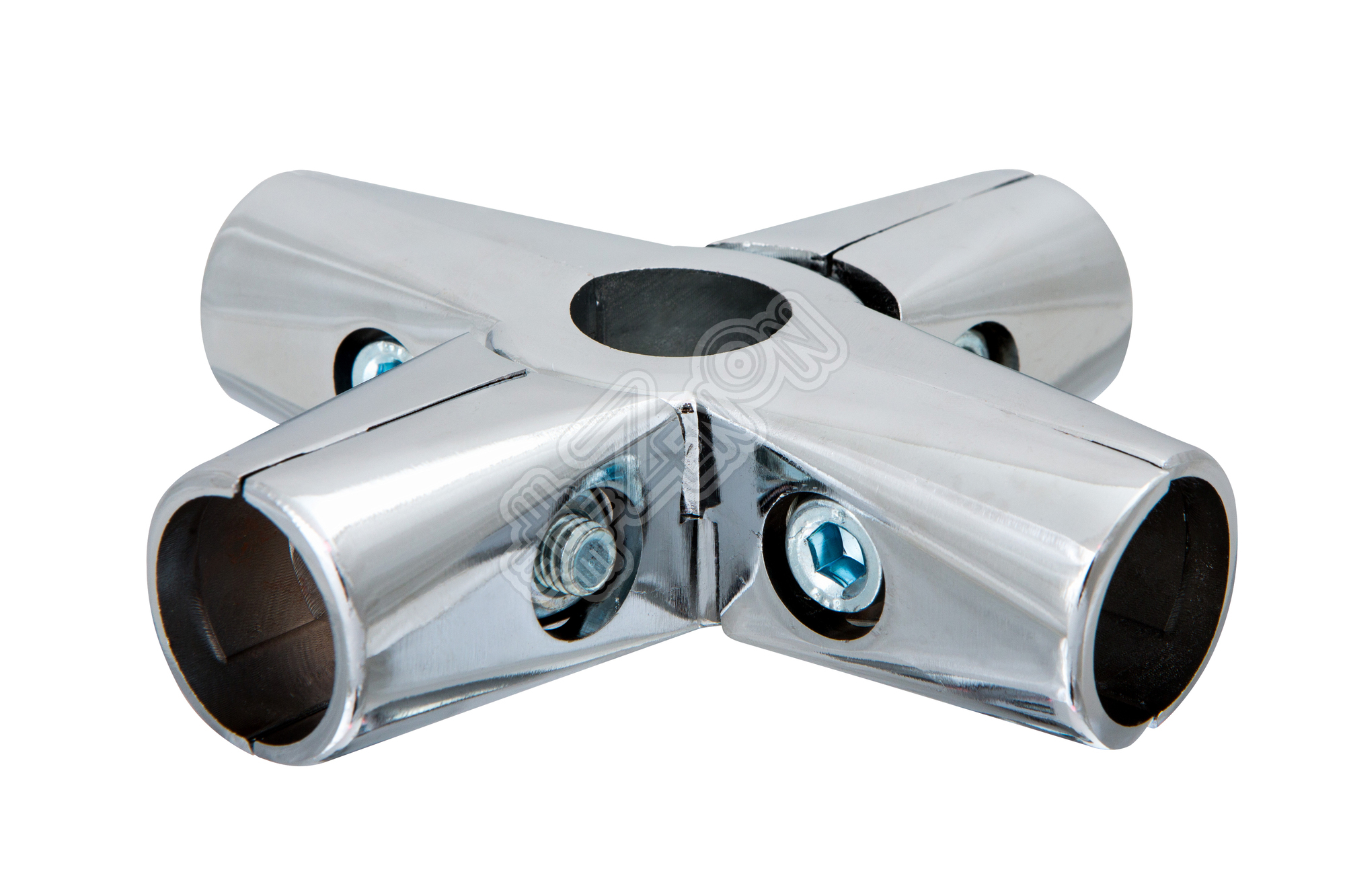 Соединитель для труб в шести направлениях, усиленный аналог элемента UNO-chr-10. Гальваническое хромирование.