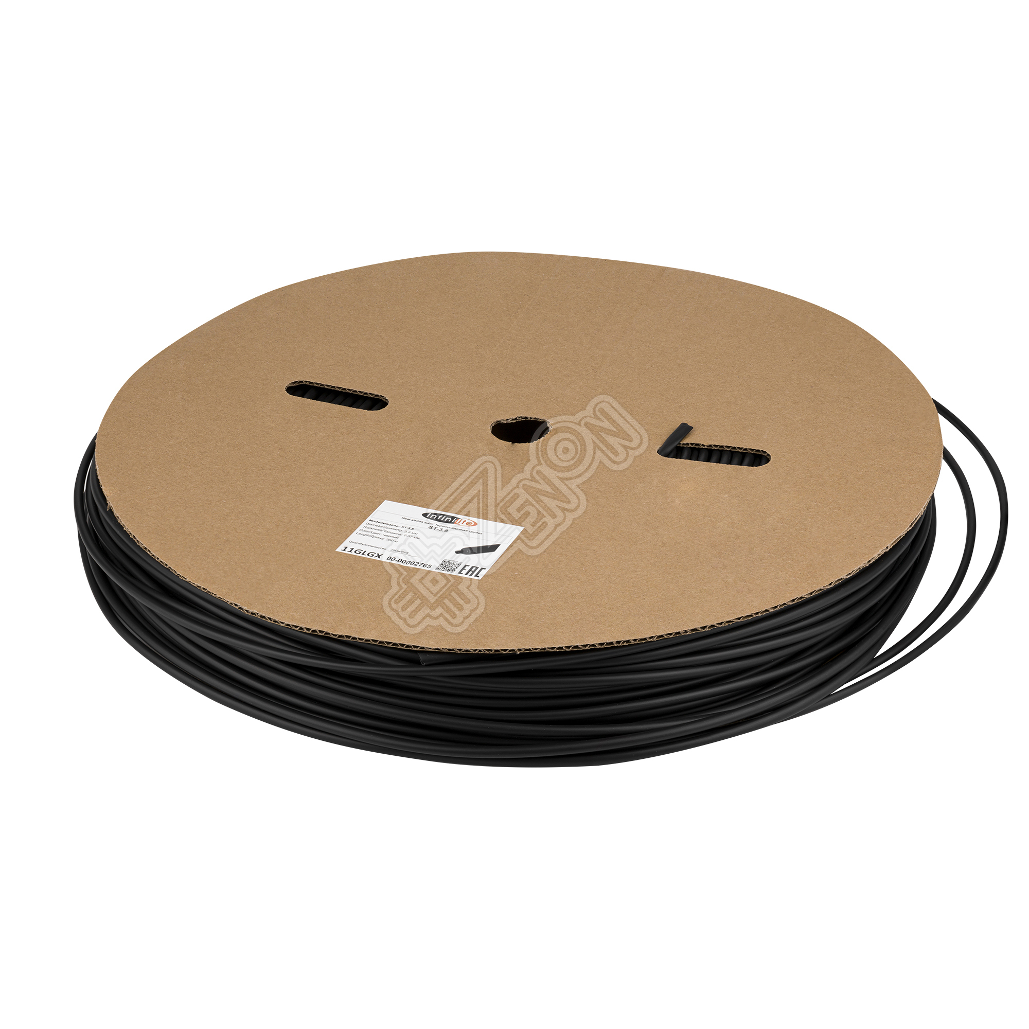 Термоусадочная трубка чёрная с клеевым слоем d=3.8 мм, толщина 0.35 мм, t=90-125°С, рулон 200 м