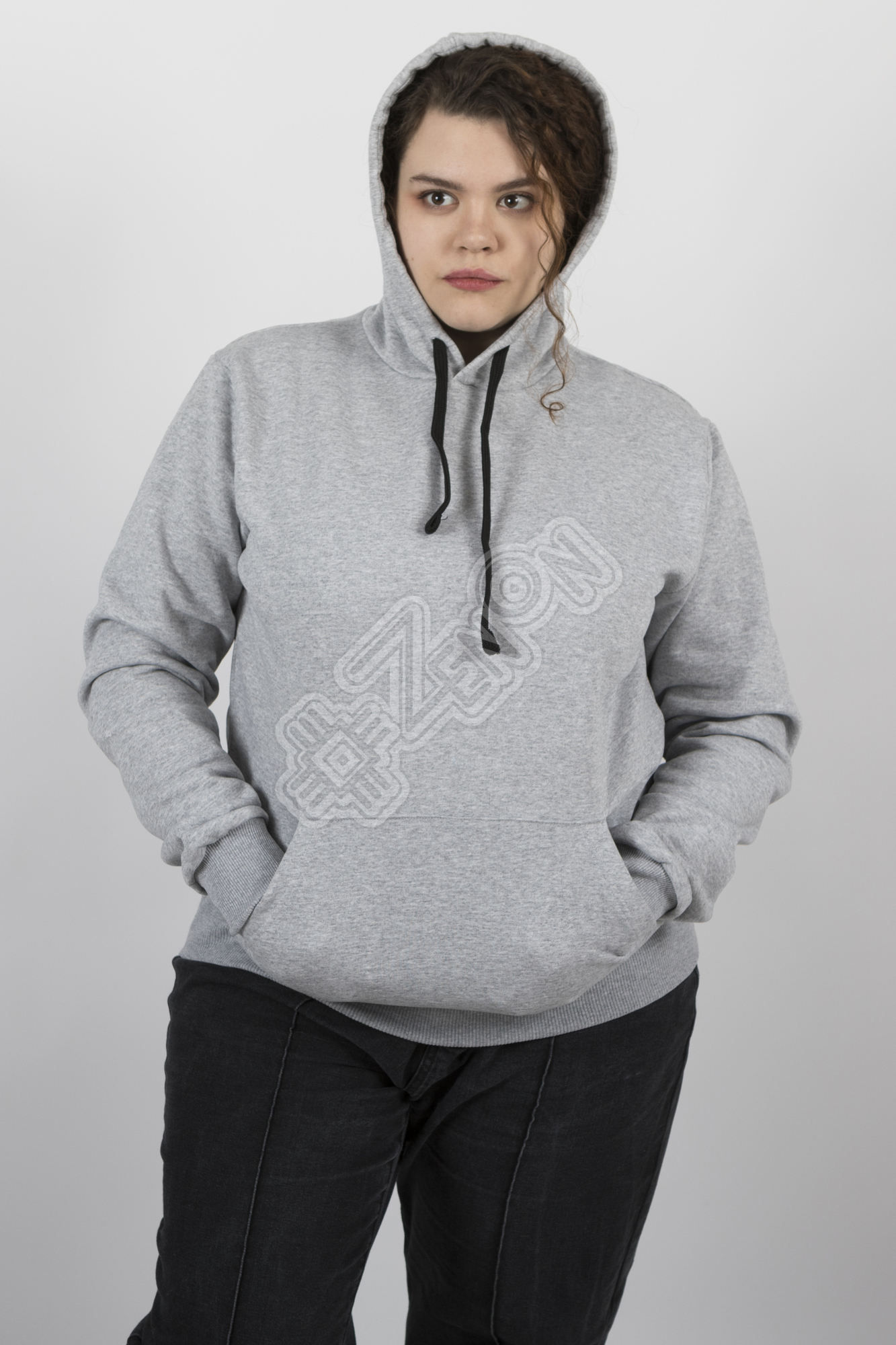- Капюшон со шнурком, карман «кенгуру»
