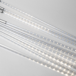 Светодиодная гирлянда INFINILITE "Тающие сосульки", выполненная из десяти прозрачных колб в виде сосулек, светящимися холодным белым цветом. Эффект свечения напоминает каплю, стекающую по настоящей тающей сосульке. Источником света являются светодиоды SMD.