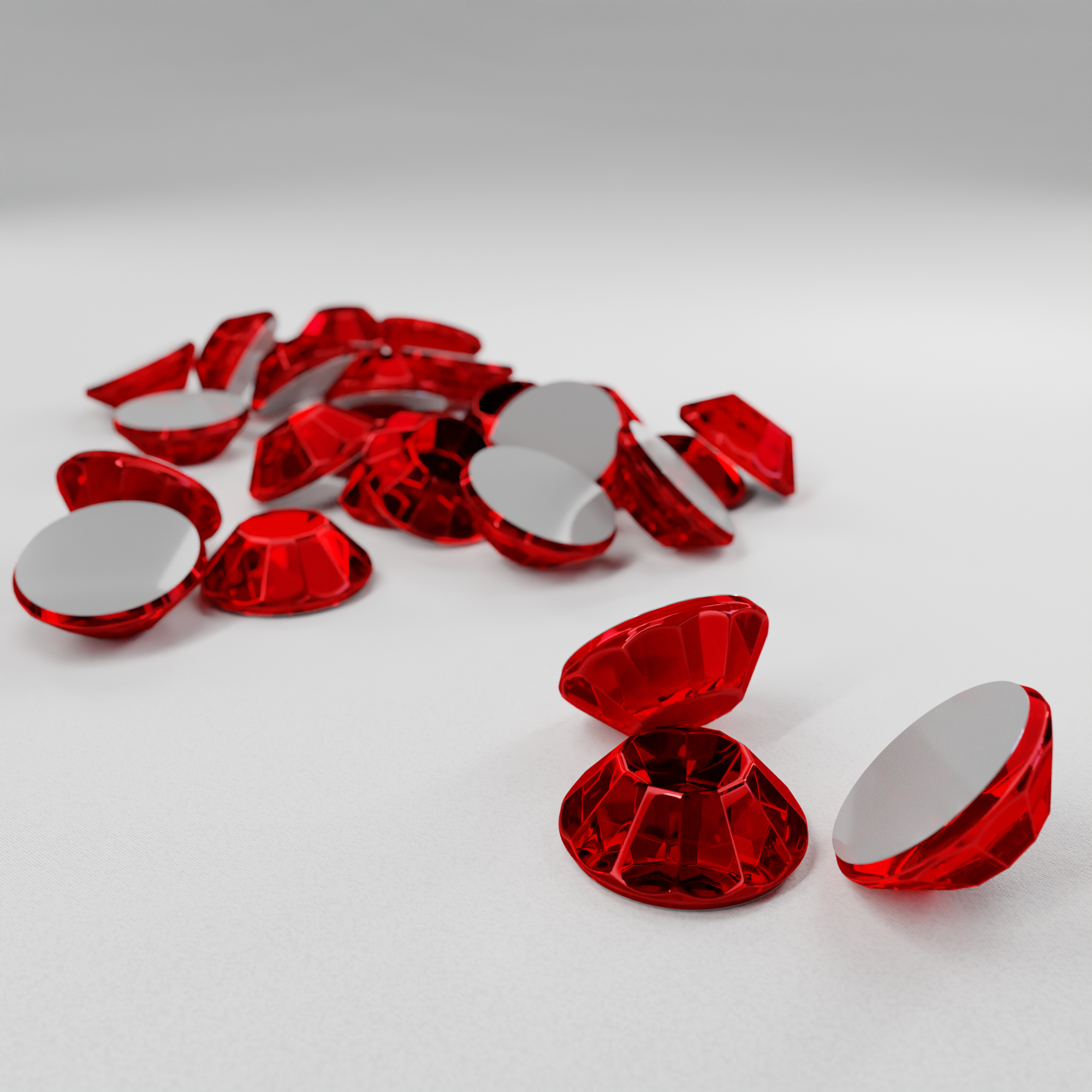 RHINSTONES - стеклянные стразы, круглой "классической" формы, со срезанными (плоскими) вершинами и ограненными краями. Цвет: светло-красный.