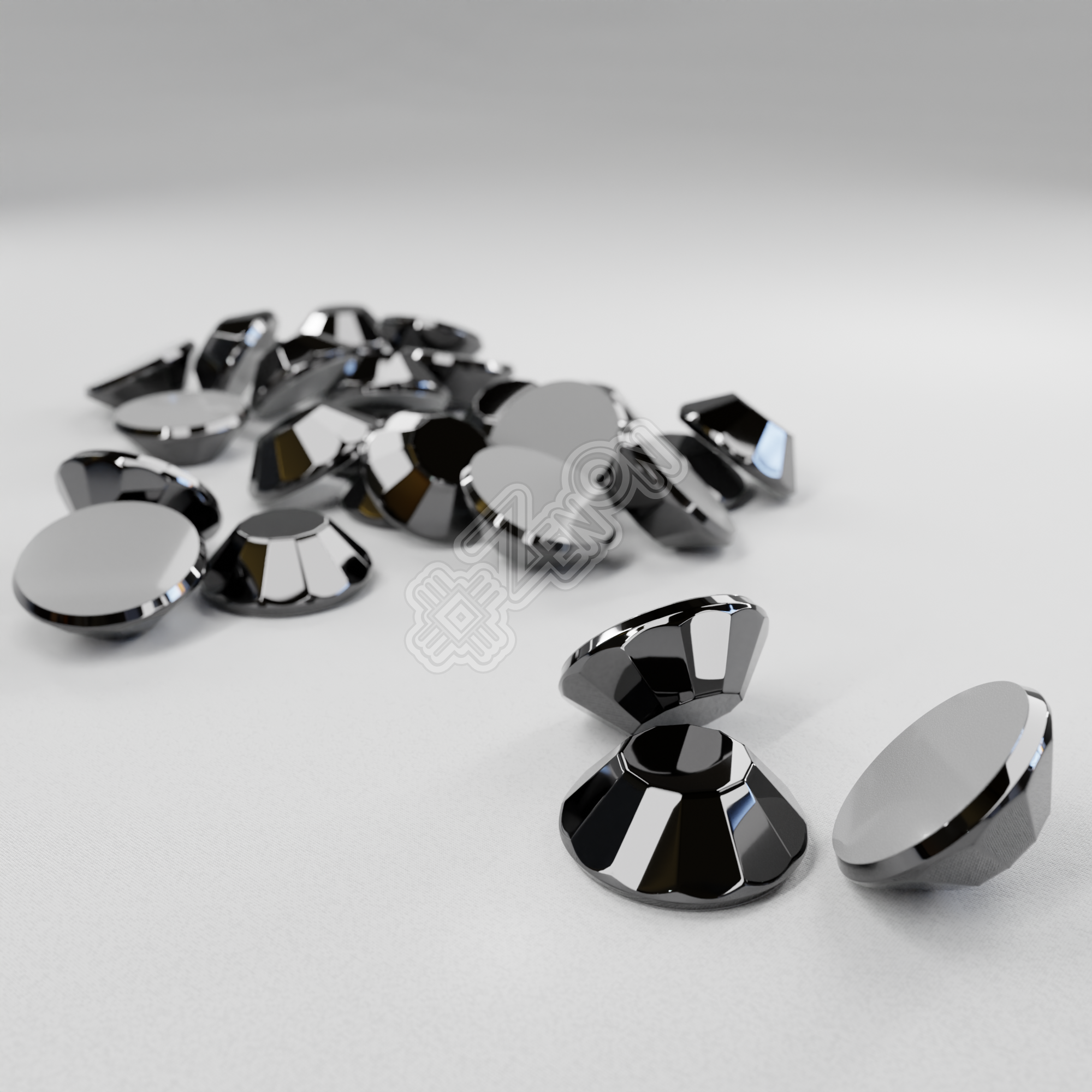 RHINSTONES - стеклянные стразы, круглой "классической" формы, со срезанными (плоскими) вершинами и ограненными краями. Цвет: зеркально-чёрный.
