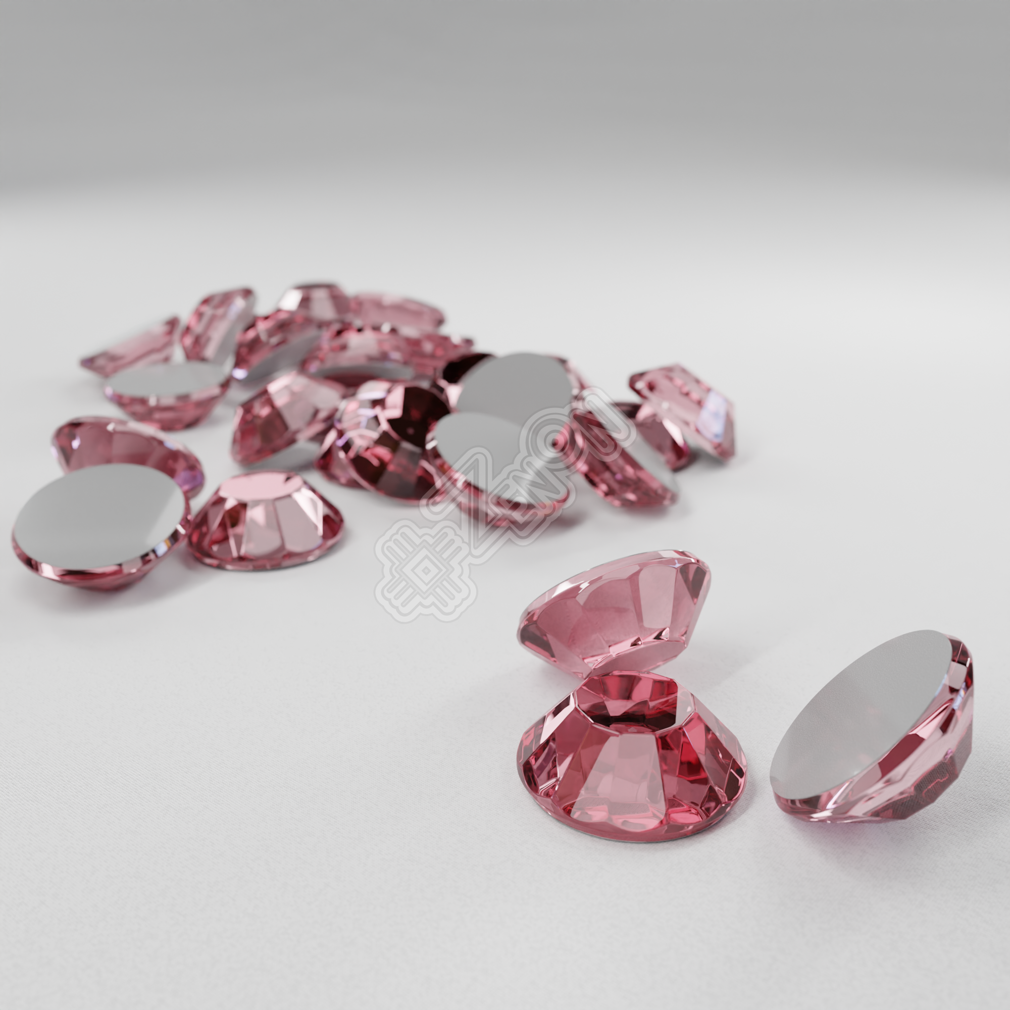 RHINSTONES - стеклянные стразы, круглой "классической" формы, со срезанными (плоскими) вершинами и ограненными краями. Цвет: розовый.