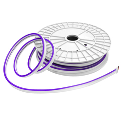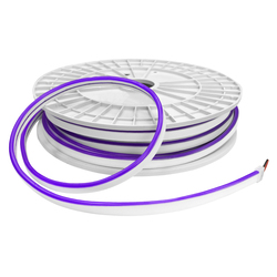 Гибкий неон – гибкий световой шнур, представляющий собой светодиодную ленту, залитую в оболочку из термопластичного эластомера (TPE/ТПЭ). Поставляется в катушках по 20. Обладает практически теми же свойствами и предназначен для тех же целей, что и дюралайт, однако имеет ряд существенных особенностей.