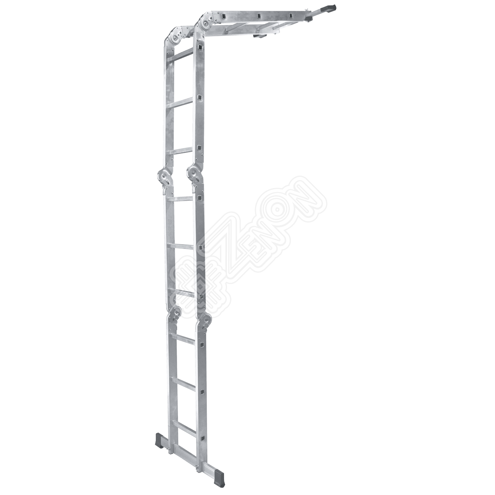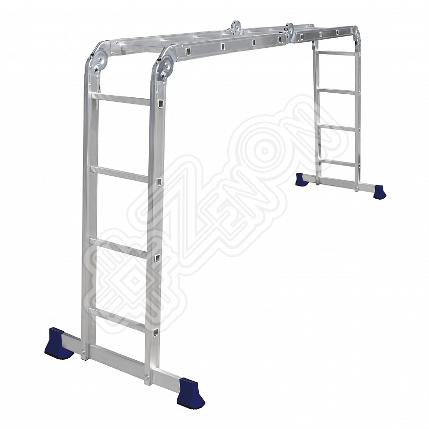 Алюминиевая четырехсекционная шарнирная лестница серии ТL, применяется при работе на высоте в виде «двухсторонней стремянки» 4.1 м, в виде «приставной лестницы» до 6.7 м.
