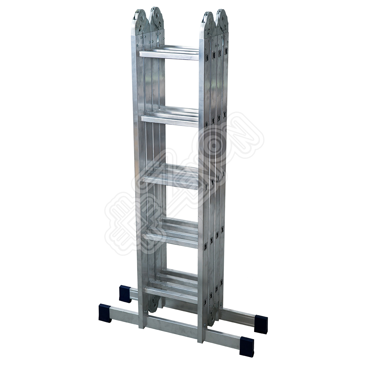 Алюминиевая четырехсекционная шарнирная лестница серии ТL, применяется при работе на высоте в виде «двухсторонней стремянки» 4.1 м, в виде «приставной лестницы» до 6.7 м.