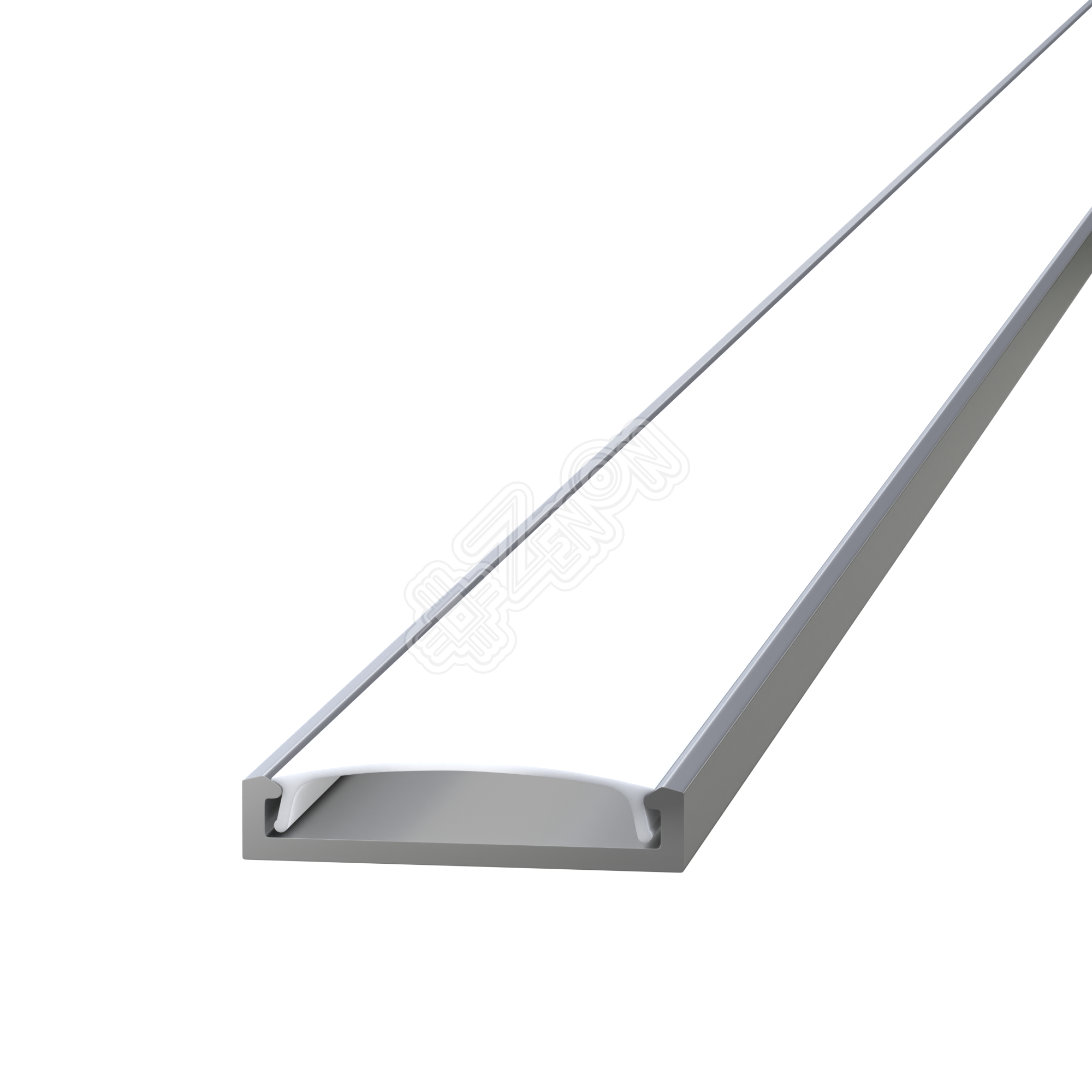 Алюминиевый профиль ALU-MINATION 2006 для светодиодных лент имеет П-образную форму и может быть установлен накладным способом. Профиль имеет паз для установки светорассеивающего экрана, который выполняет сразу две функции: