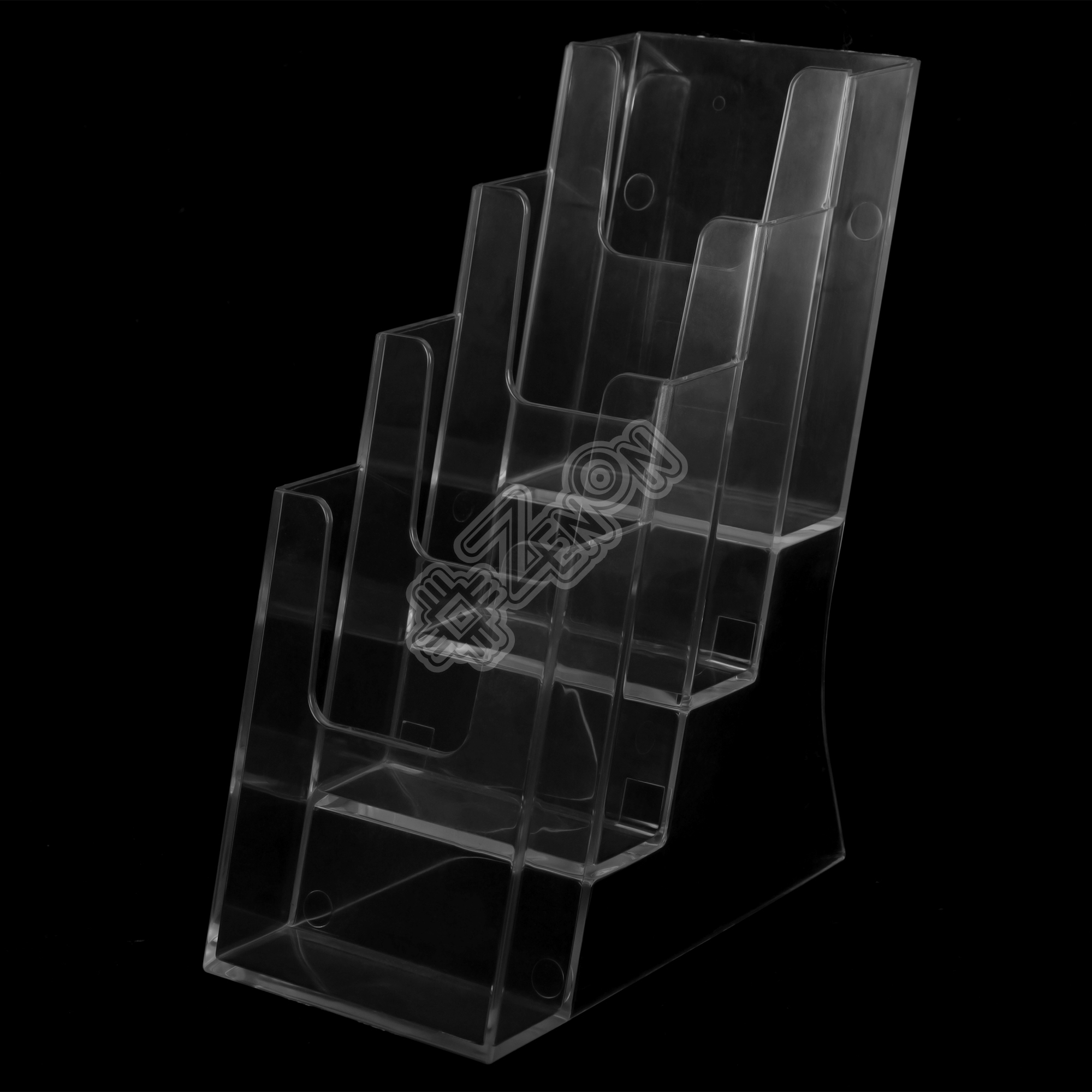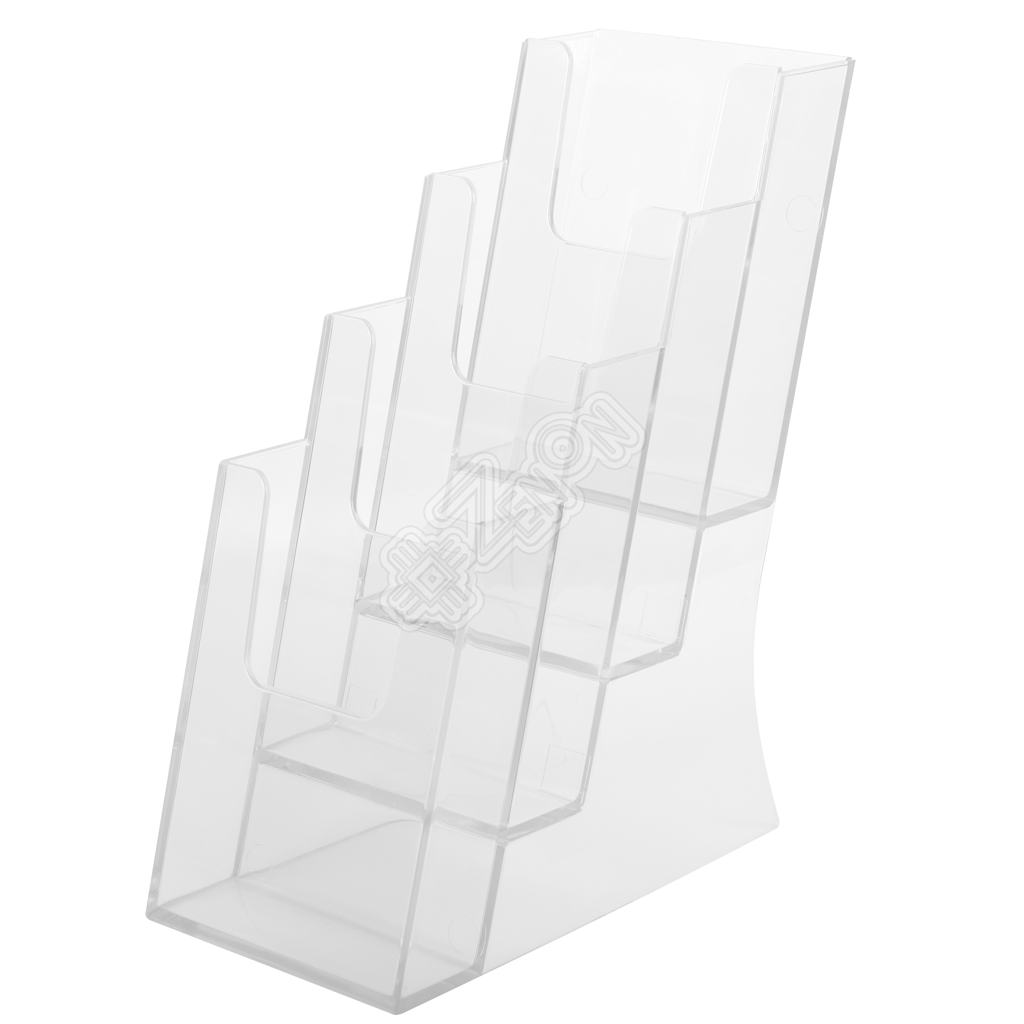 Настольная буклетница на 4 кармана. В карманах размещается печатная рекламная и презентационная литература формата А6 или 1/3 А4, такой формат называют еврофлаер, флаер или евробуклет.