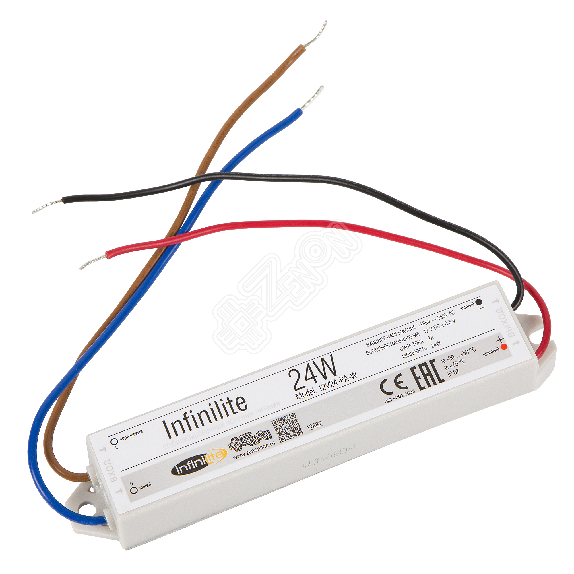 Блок питания Infinilite серии J, 24 Вт, 12 В, IP67, уличный, герметичный, в пластиковом корпусе, ток 2.0 A