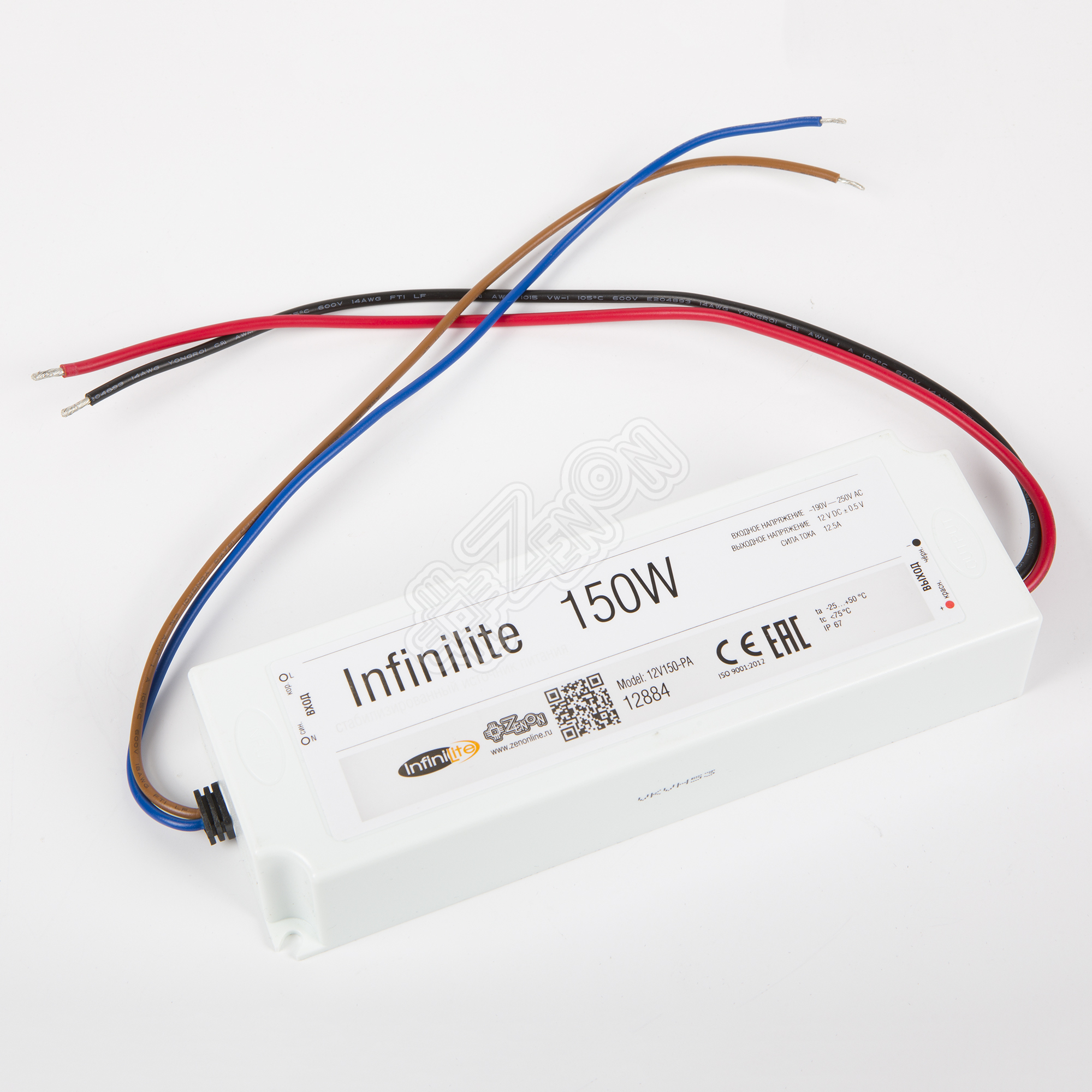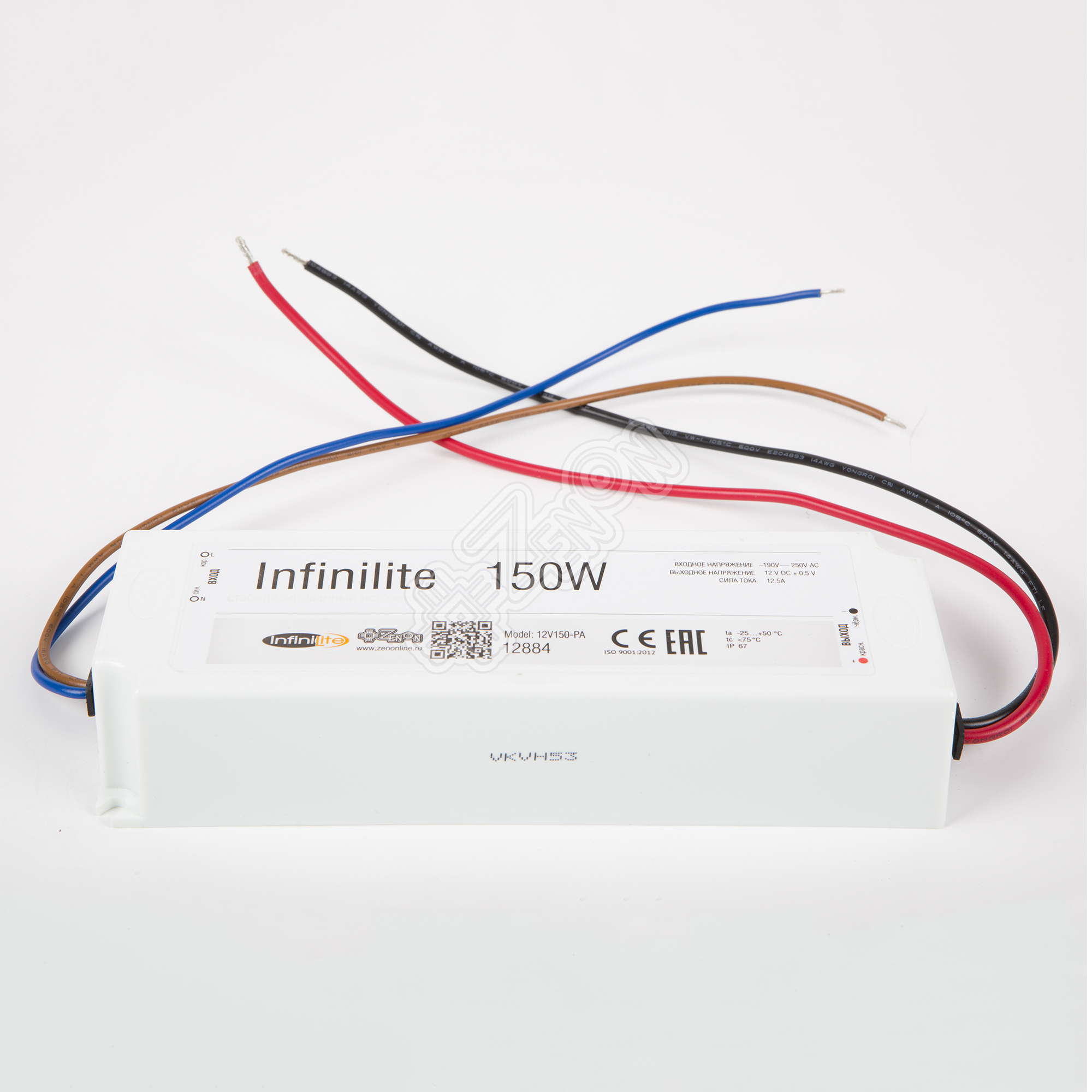Источник постоянного напряжения 12 Вольт мощностью 150 Ватт во влагозащищённом корпусе. Предназначен для использования со светодиодными лентами, линейками, модулями, лампами и др. устройствами соответствующего напряжения.