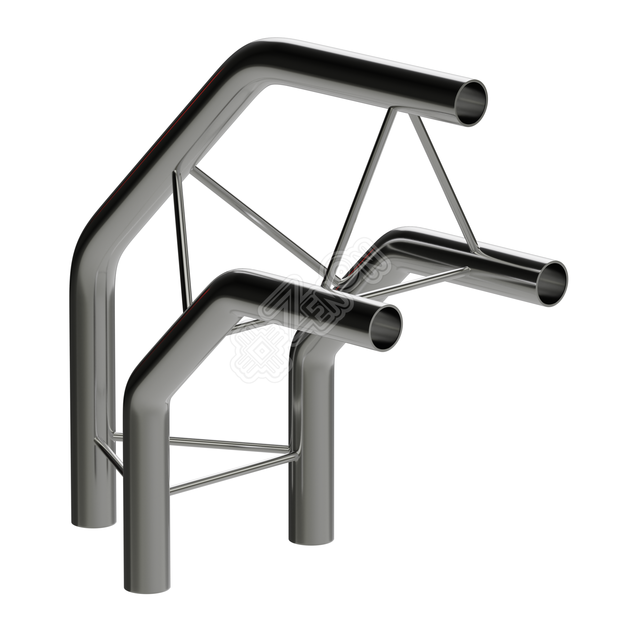 Угол полукруглый с внешней осью. Позволяет в модульной системе TRITIX соединить между собой горизонтальные стальные конструкции из трех труб.
