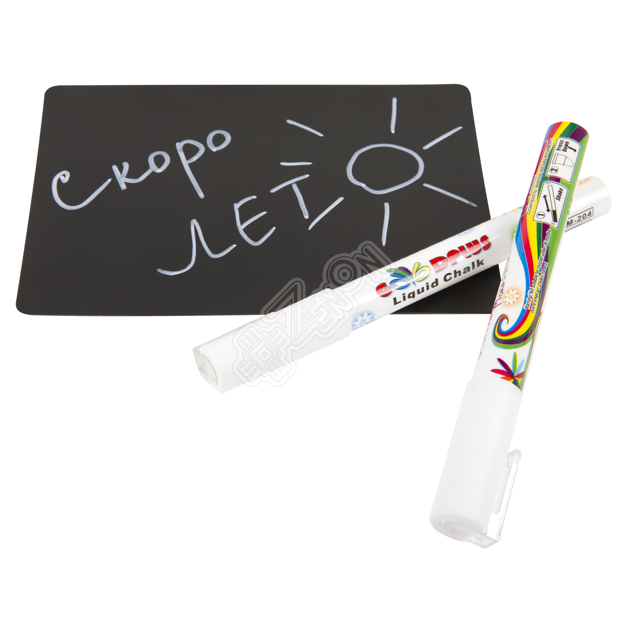 Маркер меловой для написания текста на любой твердой непористой поверхности: меловые таблички, меловые доски, стекла. Толщина линии 1-3 мм, цвет белый.