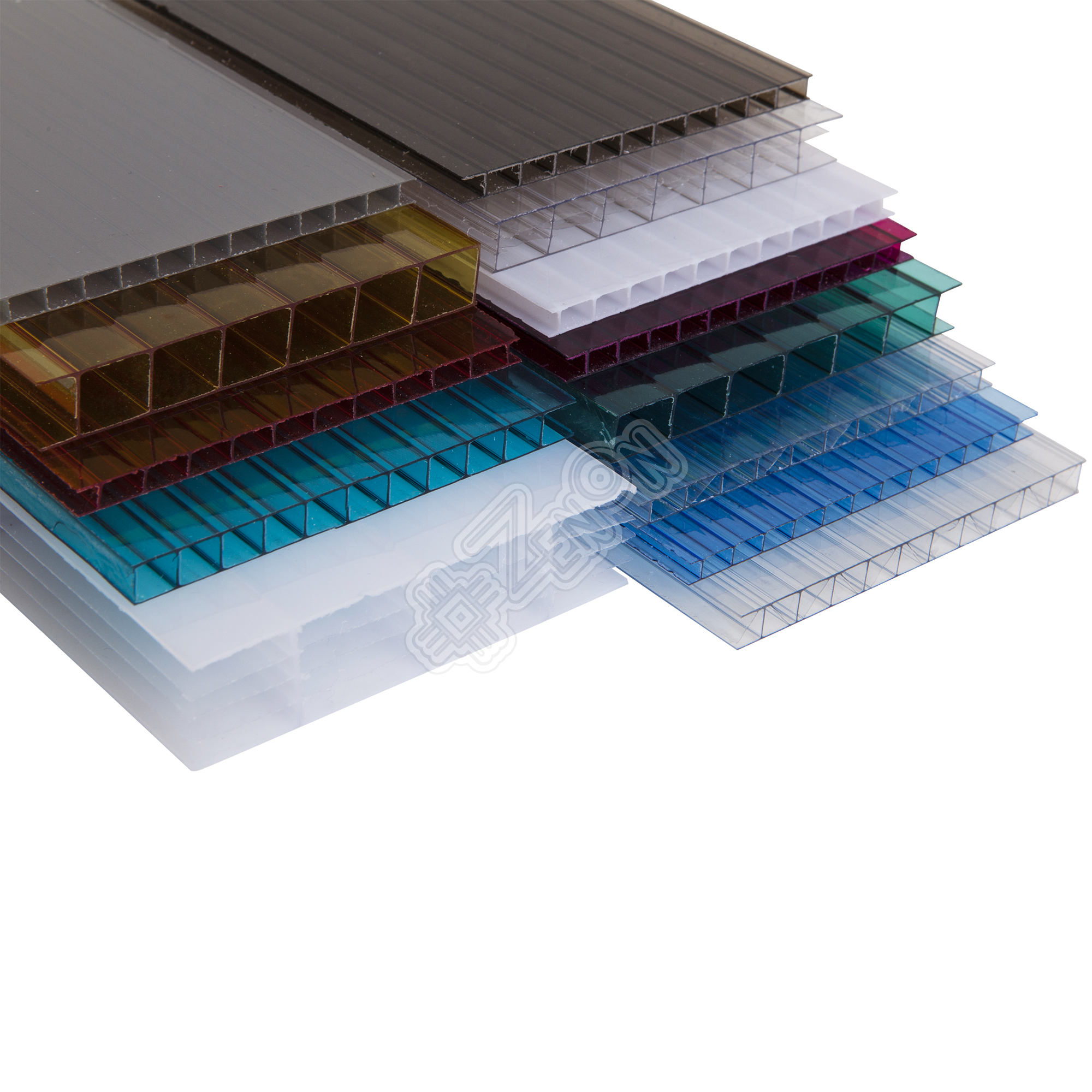 Получаются полые листы, в которых 2 или более слоев поликарбоната соединены внутренними продольными ребрами жесткости ориентированными в направлении длины листа. Высокая пластичность и прочность самого материала делает возможным получать экструзионным способом листы с очень тонкими стенками (0.2-0.7 мм) без потери ударопрочных характеристик и в то же время с очень малым весом.