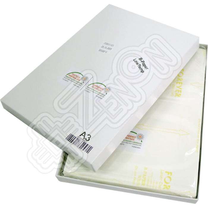Белая клеевая основа бумаги B LowTemp проявляет свои адгезионные свойства уже при температуре 100°C, что позволяет работать с широким ассортиментом материалов и поверхностей. К тому же белое покрытие бумаги B LowTemp улучшает укрывистость и яркость цветов на темных тканях, а также усиливает адгезию для большей износостойкости и устойчивости к стиркам.