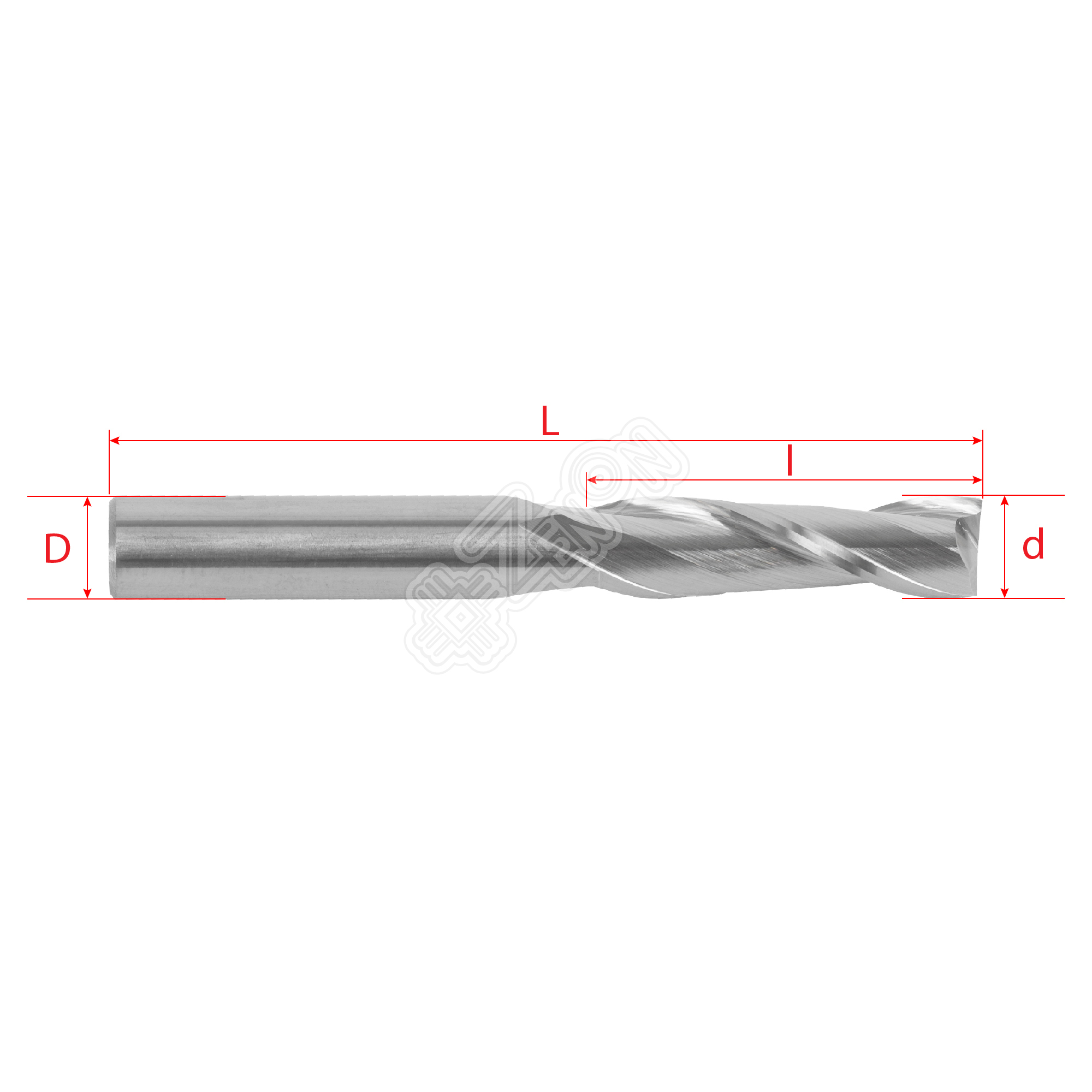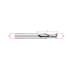 Геометрия фрезы обеспечивает отвод стружки вверх, что обеспечит меньший нагрев фрезы (по сравнению с фрезами стружка вниз), и чистую нижнюю поверхность заготовки, если фрезеровать материал насквозь. Две режущие кромки фрезы позволят обрабатывать материалы быстрее, по сравнению с однозаходными фрезами, но это и увеличивает нагрев фрезы. Рекомендуем увеличивать подачу обработки, что уменьшит нагрев фрезы и сократит время обработки.