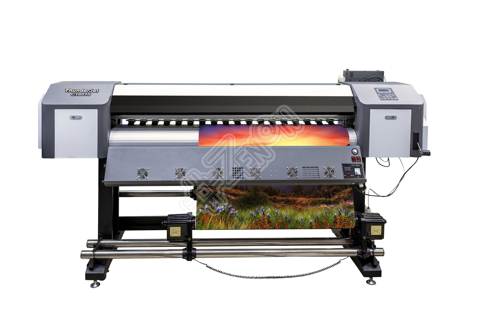 Принтер ThunderJet C1601S является оптимальным выбором с широким спектром применений, таких как печать вывесок, баннеров, табличек, плакатов, световых коробов, автомобильной графики и много другого. Благодаря усиленной конструкции и качественным фирменным комплектующим, принтер способен без перерывов выполнять самые крупные заказы со стабильным качеством, а значит, что Ваши клиенты будут всегда довольны выпускаемой Вами продукцией. Широкие прижимные ролики предотвращают малейший сдвиг носителя, одновременно, исключая его деформацию. Надежная система размотки и намотки материала обеспечивает его точную и плавную подачу в зону печати. Новейшая направляющая рельса марки Hiwin и конструкция рамы исключает паразитные детонации при печати и гарантирует качественную работу принтера в скоростном режиме.