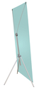 Баннерный стенд Х-типа, улучшенного качества. Цвет - чёрный. "Усы" стенда изготовлены из алюминия, центральный узел и крючки из высокопрочного пластика. Время сборки - 15-30 секунд. Рекламное поле растягивается на люверсах.