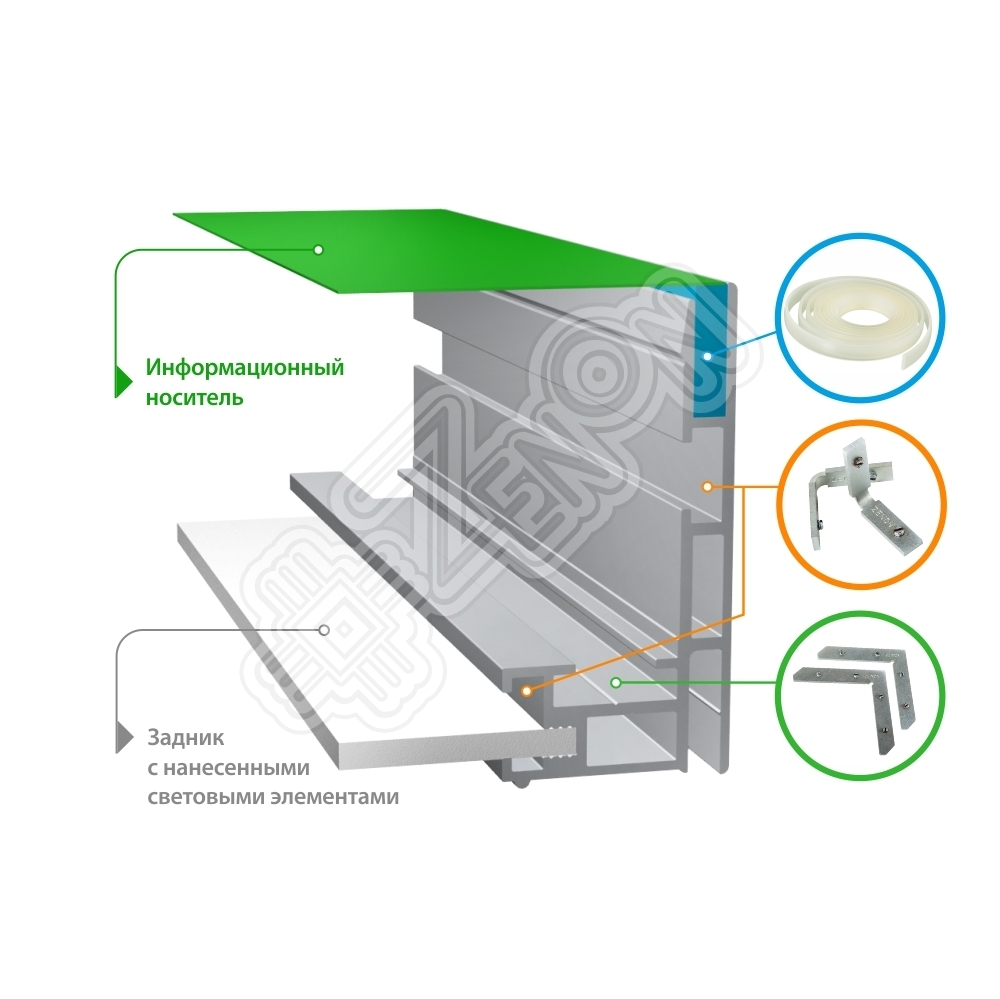 Алюминиевый профиль ALU-TEXTILE 60 L применяется для изготовления односторонних световых коробов большого формата, используемых для натяжения текстильного полотна с изображением.