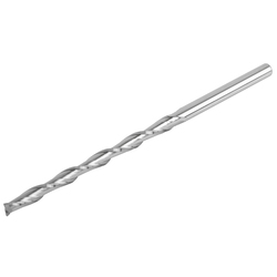 Геометрия фрезы обеспечивает отвод стружки вверх, что обеспечит меньший нагрев фрезы (по сравнению с фрезами стружка вниз), и чистую нижнюю поверхность заготовки, если фрезеровать материал насквозь. Две режущие кромки фрезы позволят обрабатывать материалы быстрее, по сравнению с однозаходными фрезами, но это и увеличивает нагрев фрезы. Рекомендуем увеличивать подачу обработки, что уменьшит нагрев фрезы и сократит время обработки.