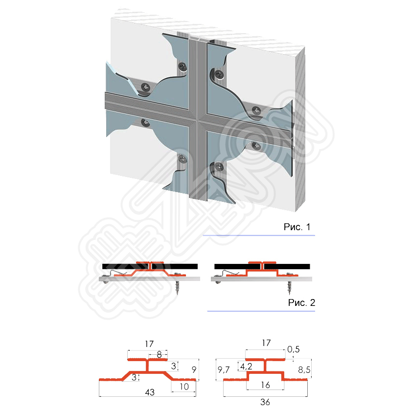 Профиль "Н"-типа. Один из пяти профилей системы "ALU-FAST". Предназначен для стыковки 2-х панелей в одной плоскости. Например, таких, как листы композитных панелей, акрила, ПВХ и других материалов (рис. 1). Особая форма ножки позволяет устанавливать крепежные элементы и обеспечить беспрепятственную установку панели в паз профиля (рис. 2).