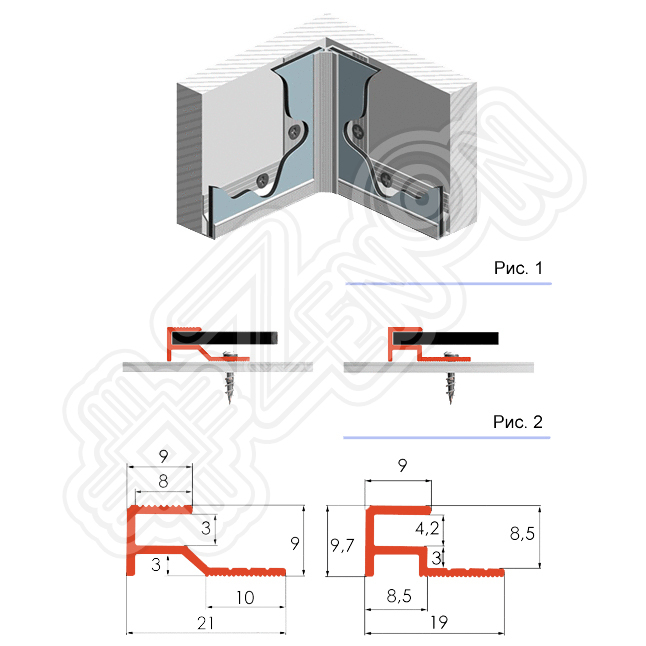 Профиль "U"-типа. Один из пяти профилей системы "ALU-FAST". Предназначен для стыковки 2-х панелей в одной плоскости. Например, таких, как листы композитных панелей, акрила, ПВХ и других материалов. Особая форма ножки позволяет устанавливать крепежные элементы и обеспечить беспрепятственную установку панели в паз профиля (рис. 2).