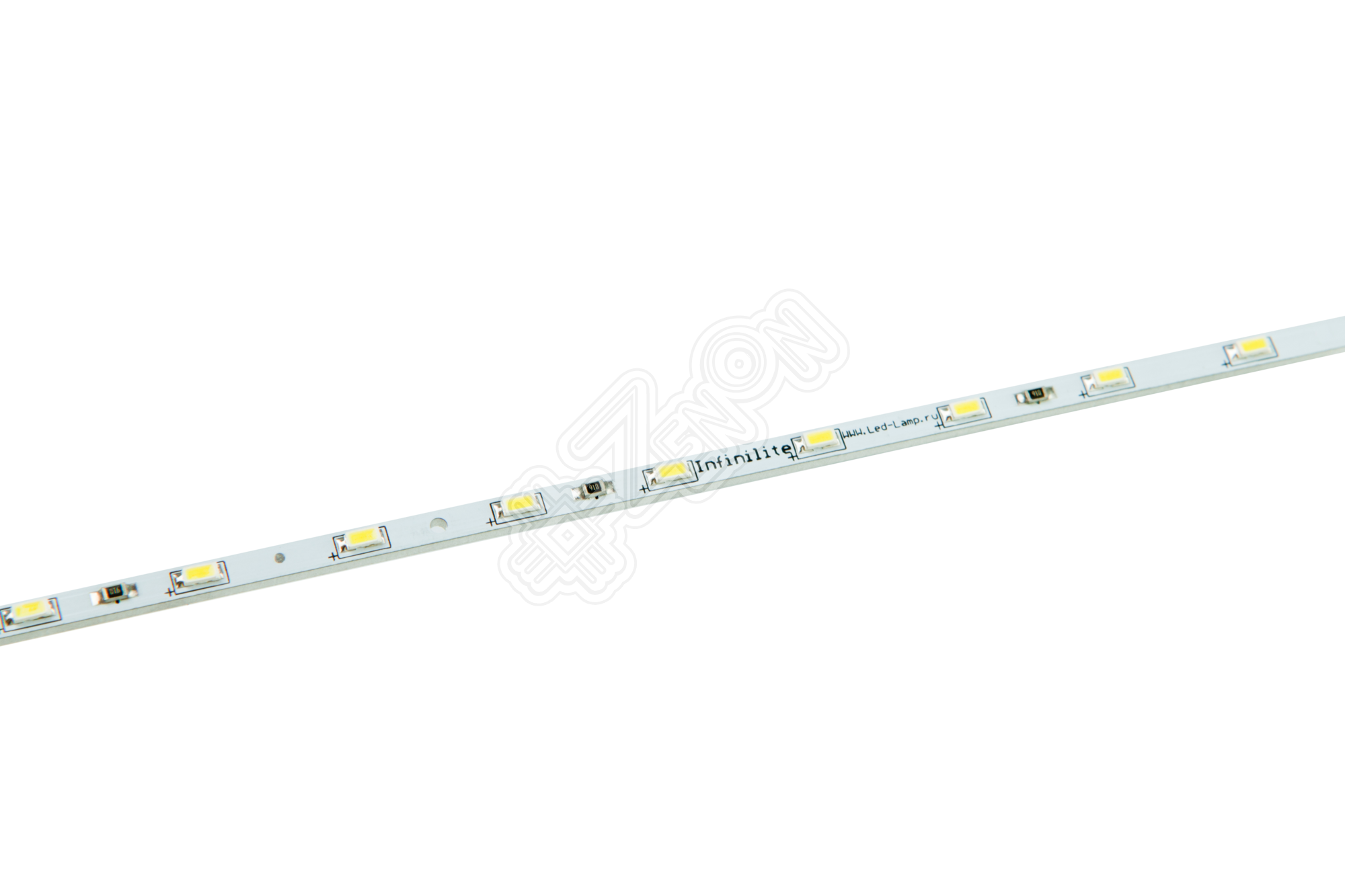 Линейка 25952 шириной 3 мм на инновационных диодах SMD 3014, создающих световой поток почти 80 люмен на отрезке 500 мм. Два слоя дорожек на стеклотекстолитовой печатной плате помогают уменьшить нагрев.