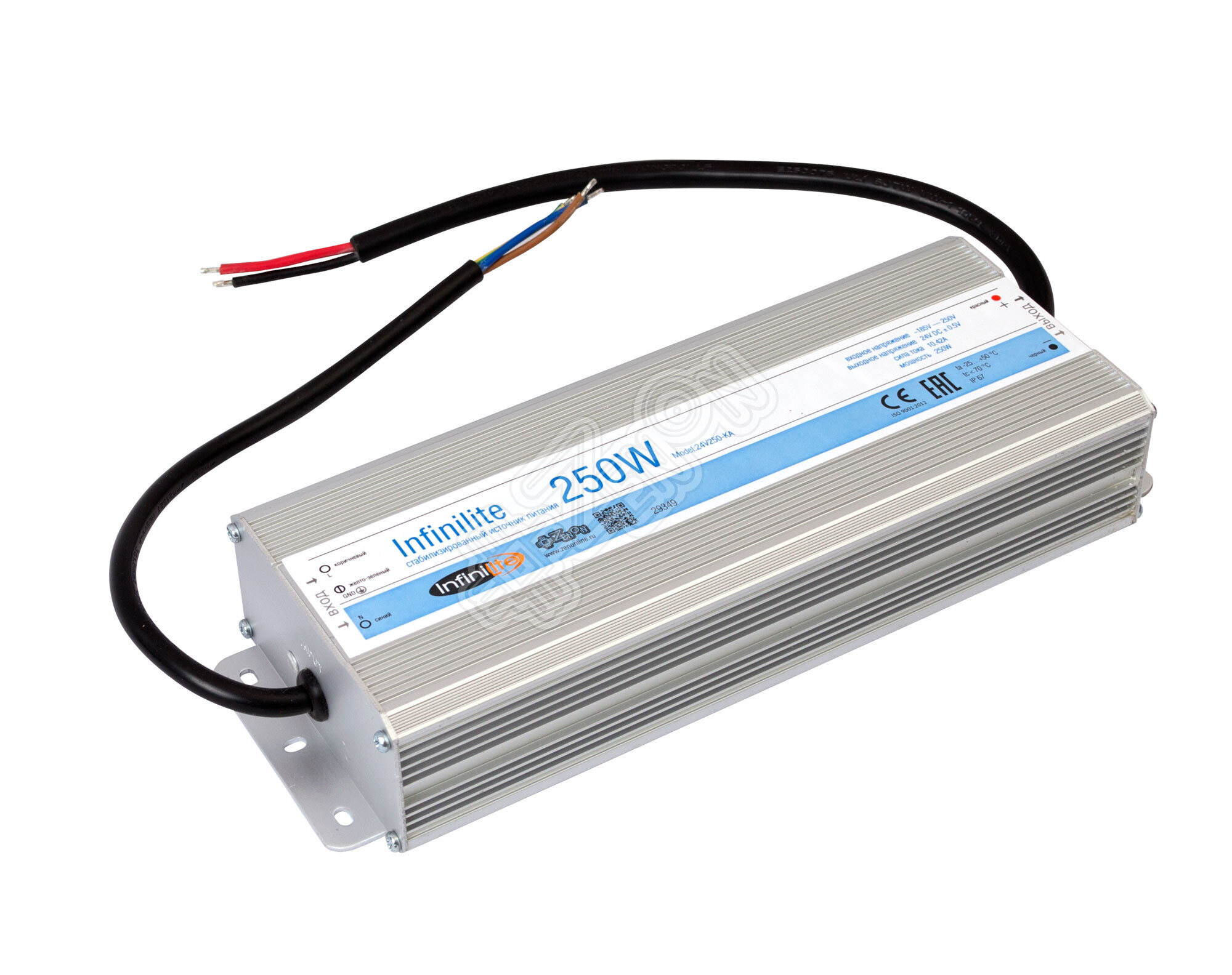 Блок питания Infinilite серии J, 250 Вт, 24 В, IP67, уличный, герметичный, в металлическом корпусе ток 10.4 A