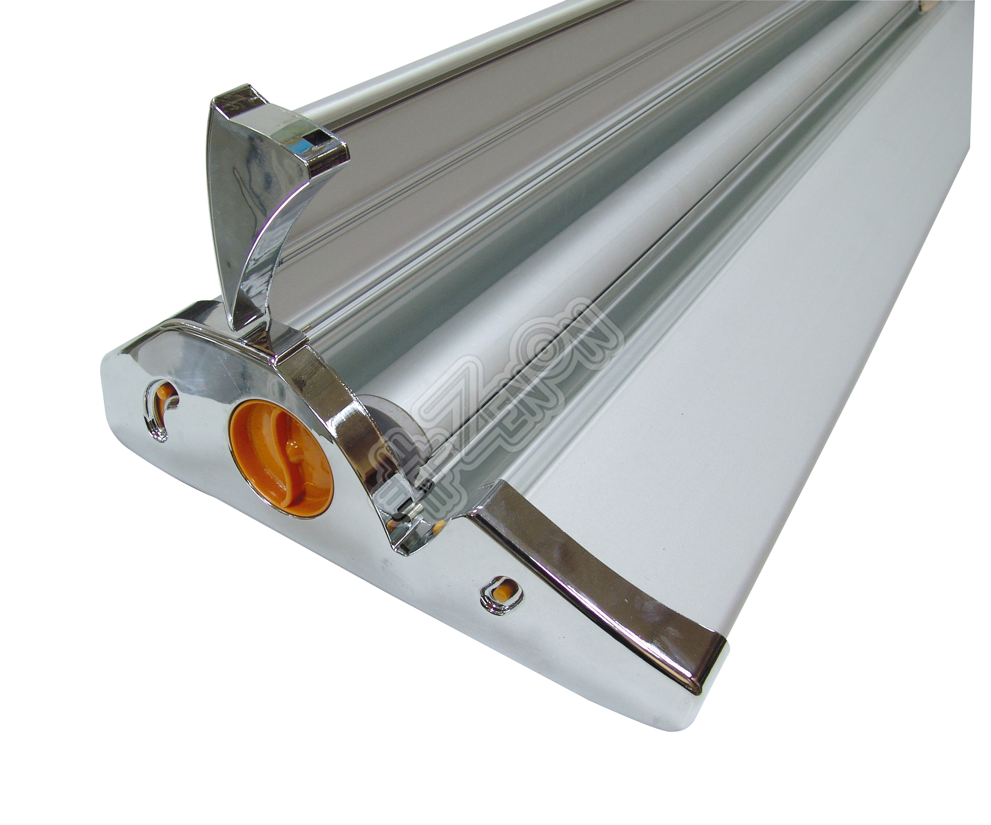 Роллерный стенд бизнес-класса, изготовлен из алюминия, с пластиковыми боковинами. Имеет защелкивающийся верхний профиль, вертикальную телескопическую планку. Для удобства есть ручка подводки механизма пружины. Рекламное поле растягивается по принципу "Экран вверх".
