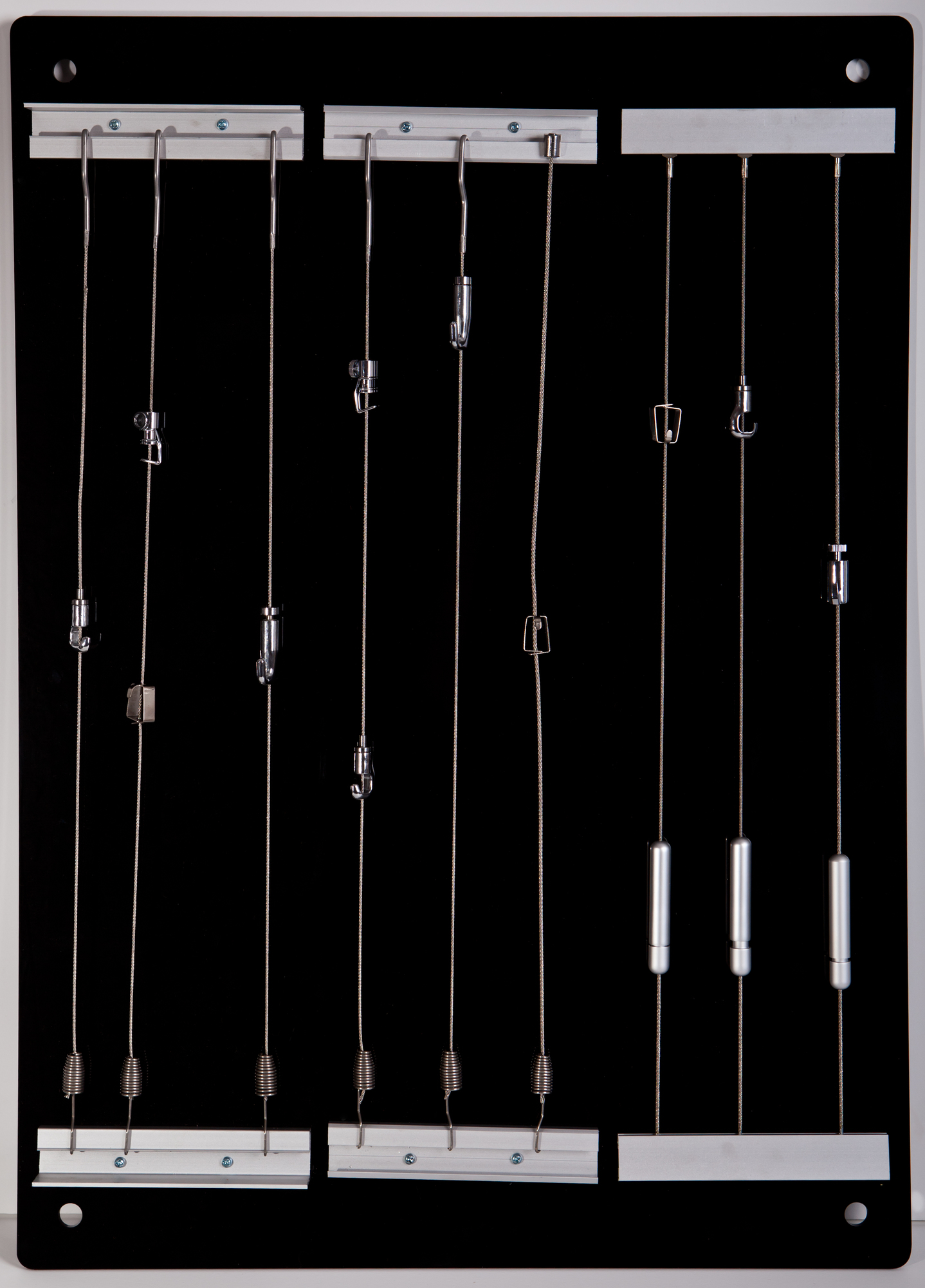 Демо. стенд галерейные системы (Китай) на черном акриле с накрученными образцами