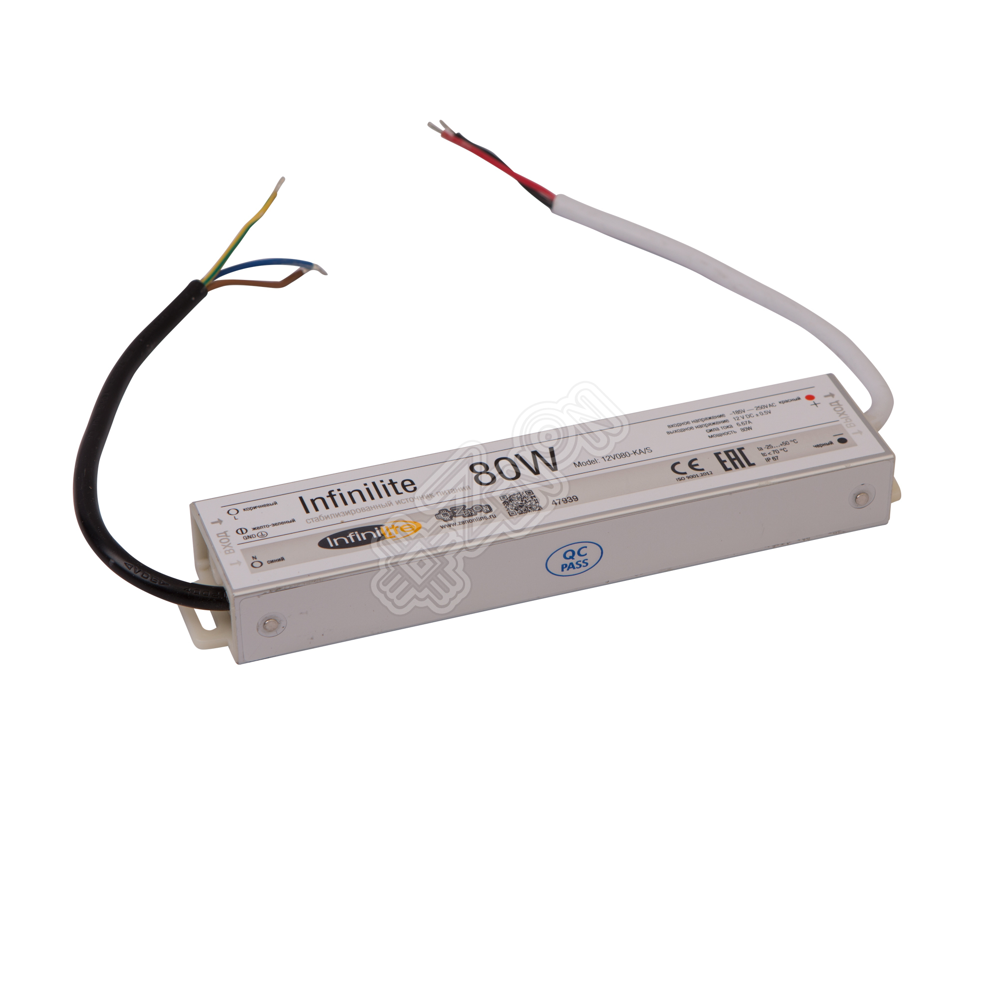 Блок питания Infinilite серии J Slim, 80 Вт, 12 В, IP67, уличный, герметичный, в металлическом корпусе, ток 6.67 A