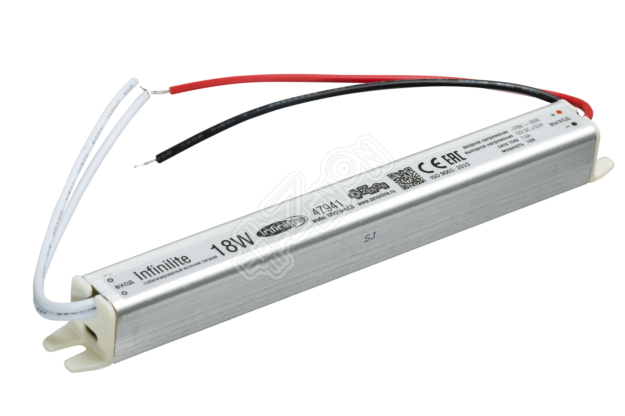 Блок питания Infinilite серии J, 18 Вт, 12 В, IP50, интерьерный, в металлическом корпусе, ток 1.5 A, для световых панелей