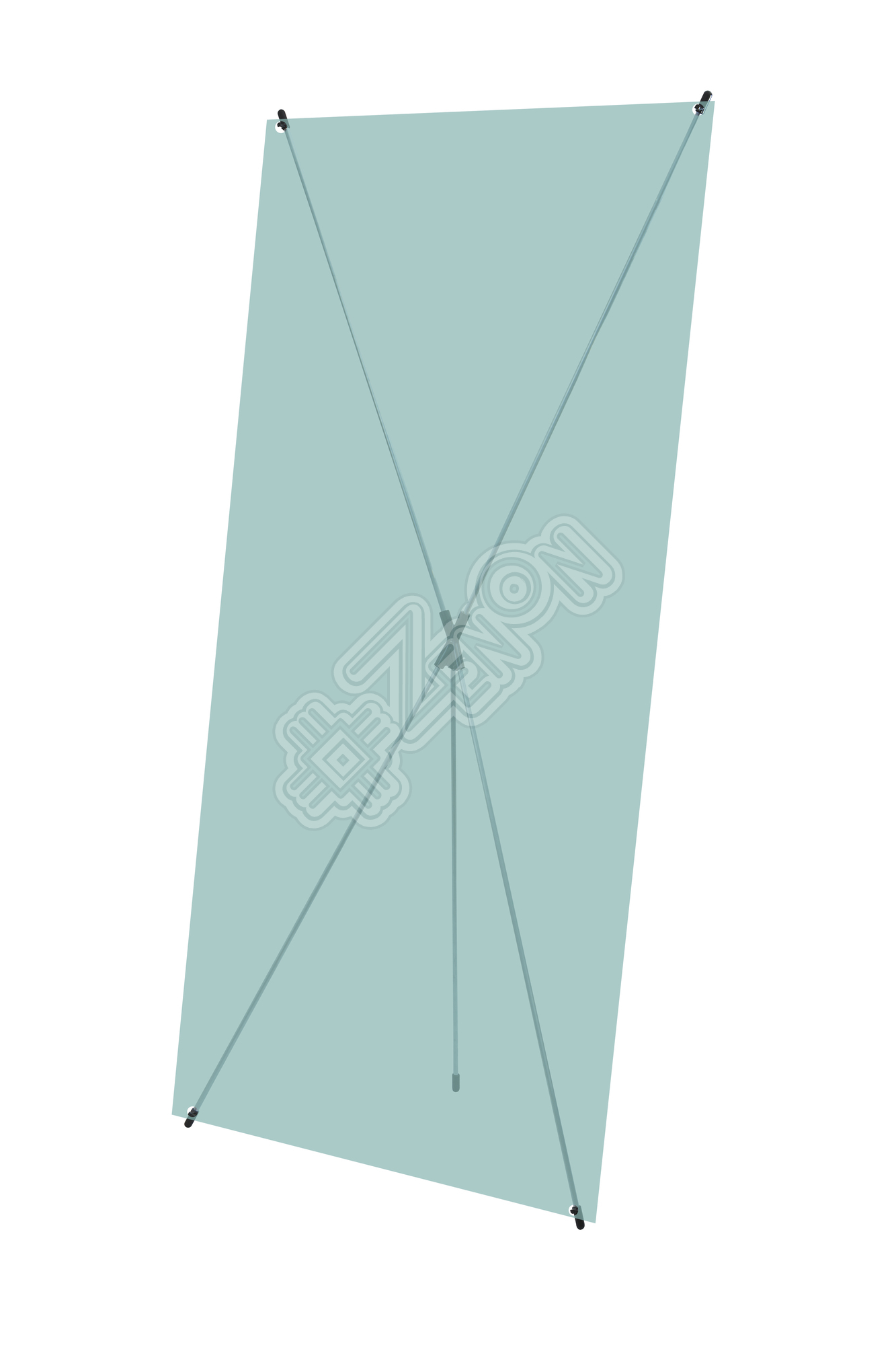 Баннерный стенд Х-типа, улучшенного качества. Цвет - чёрный. "Усы" стенда изготовлены из алюминия, центральный узел и крючки из высокопрочного пластика. Время сборки - 15-30 секунд. Рекламное поле растягивается на люверсах.