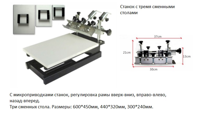 Станок ручной плоскопечатный с тремя сменными столами: