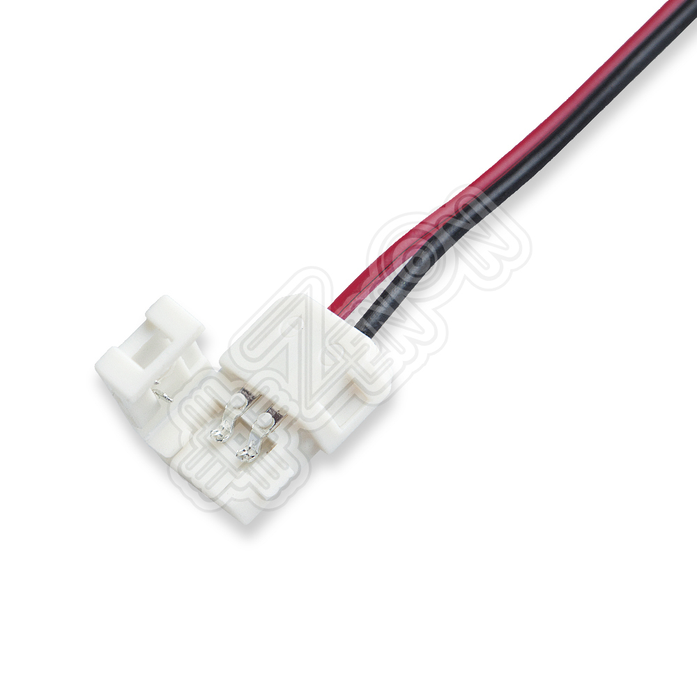 Коннектор 55553 "лента-питание" мягкий для 1-канальной (монохромной) LED ленты шириной 8 мм. Позволяет подключить светодиодную ленту к источнику питания. Представляет собой одностороннюю пластиковую колодку с двумя проводами: красный ("плюс") и чёрный ("минус").