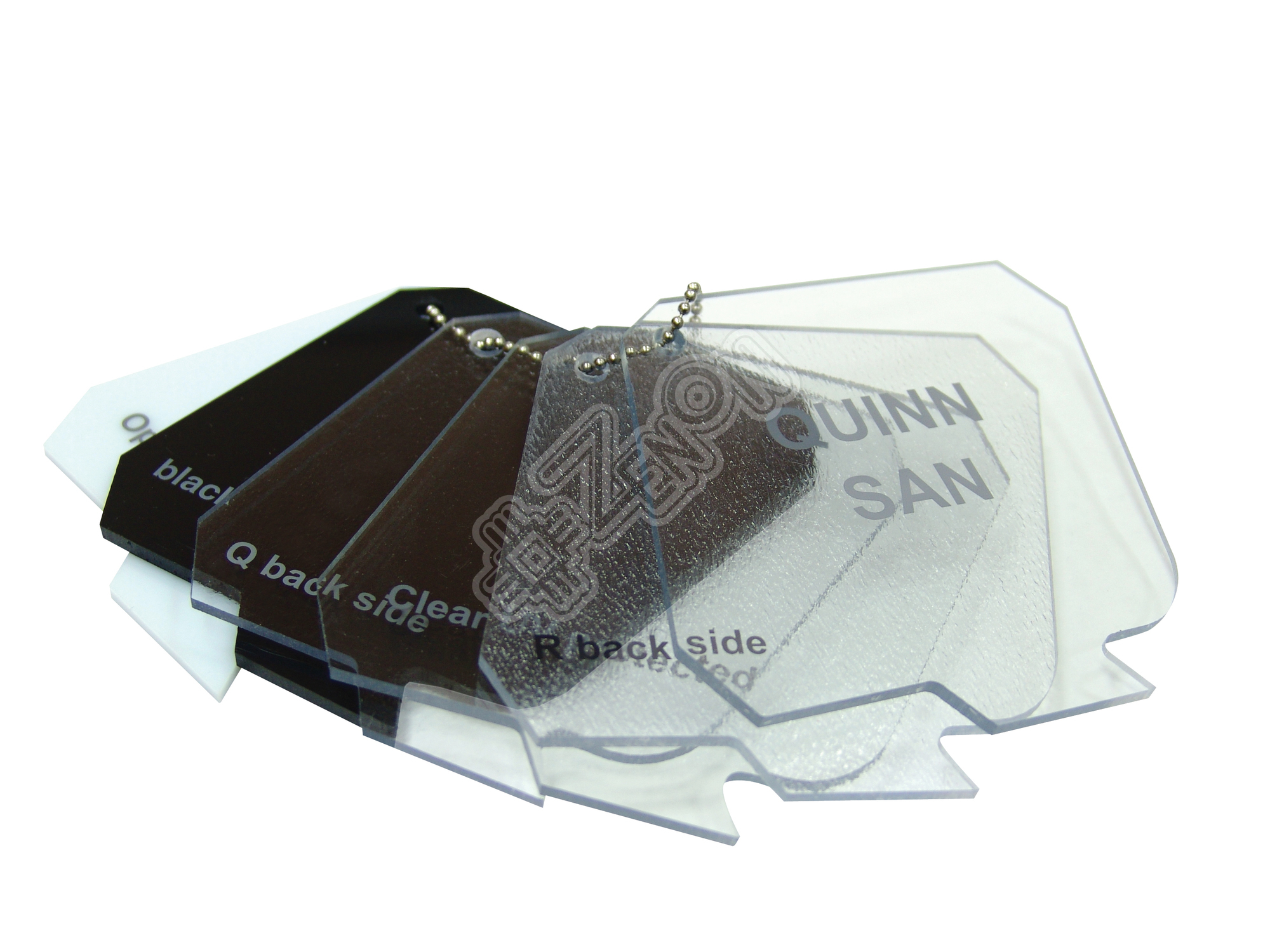 QUINN SAN - экструдированный сополимер Стиролакрилонитрила (SAN). Материал SAN был разработан в качестве альтернативы высококачественному, но дорогостоящему акрилу. По свойствам и стоимости находится между полистиролом общего назначения и акрилом. Листы QUINN SAN обладают хорошими оптическими свойствами - светопропускание до 87%. Отличаются блестящей поверхностью, стабильностью размеров (т. е. безусадочностью), хорошей химической стойкостью. Для формования QUINN SAN могут используются как позитивные (пуансон), так и негативные (матрица) формы. Могут использоваться гипсовые, стальные охлаждаемые формы, формы из эпоксидной смолы или дерева, но чаще всего используются формы из литого алюминия. QUINN SAN имеет низкую удельную теплоемкость (1.37 Дж/гК) в сравнении с акрилом (1.47 Дж/гК) и полистиролом (1.8 Дж/гК). Благодаря этому циклы нагрева и охлаждения короче, заметно меньше затраты времени (20%) и энергии на разогрев. Предварительная сушка SAN перед формованием не требуется.
