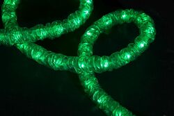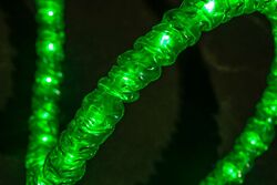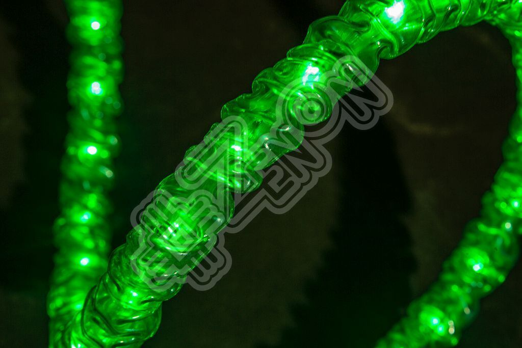 Равномерность свечения. На одном погонном метре дюралайта обычно размещается 36 шт (стандарт) миниатюрных ламп накаливания или светодиодов, расстояние между которыми составляет чуть менее 3 см. Таким образом, равномерного непрерывного свечения по всей поверхности шнура дюралайт получить не позволяет. Световой шнур с равномерным матовым свечением имеет большее число светодиодов на метр погонный, специальную светорассеивающую оболочку, стоит в несколько раз дороже и носит название «Гибкий неон» или «Холодный неон» (см. стр. №….).