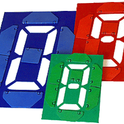 Принцип работы "сегмент - цифры" следующий. На световом коробе, затянутом цветной непрозрачной пленкой вырезаются семь стандартных сегментов цифры, образуя как бы световые окошки. Если все семь сегментов светятся (за счет подсветки изнутри) - образуется символ цифры "8", закрывая часть окошек-сегментов с помощью специальных пластмассовых шторок можно получать символы всех десяти цифр.